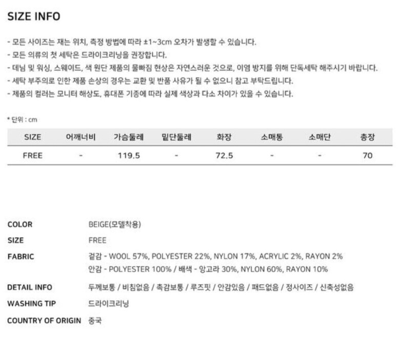 6. 세탁방법 및 취급시 주의사항 | 상품상세참조 |