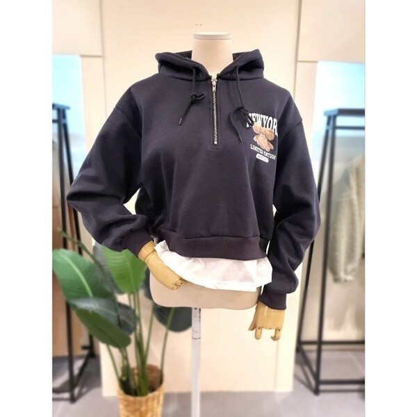 레이어드 코디를 한 듯 밑단에 흰색 팁이 붙어있는 후드티셔츠입니다.캐릭터 프린트에 집업 후드넥으로 캐주얼합니다.기본보다는 살짝 짧은 기장입니다.안감 기모로 따스합니다. 두텁지 않아 이너로도 활용하기 좋습니다.