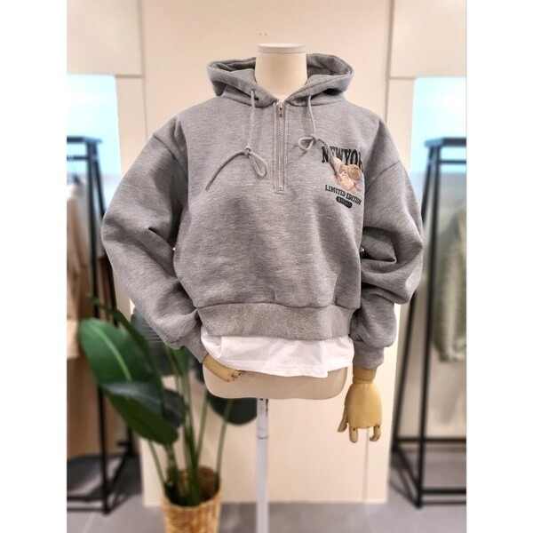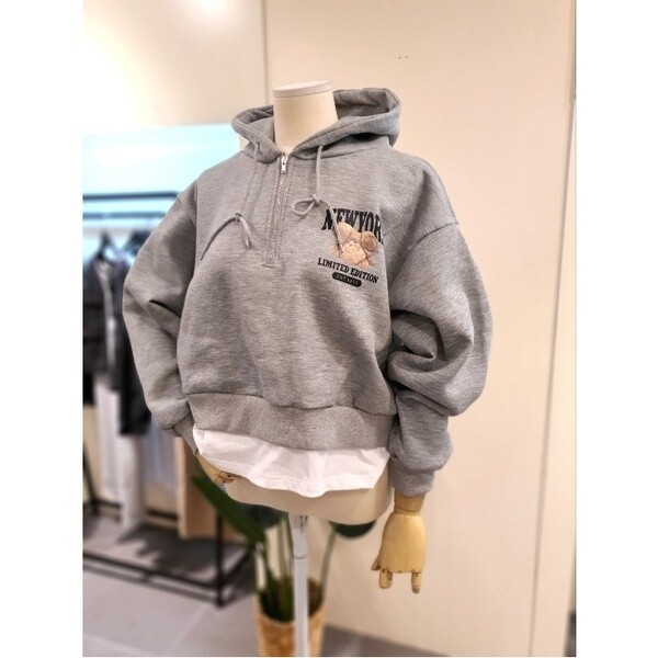 KETSOB01_레이어드 집업 후드 기모 맨투맨 GR