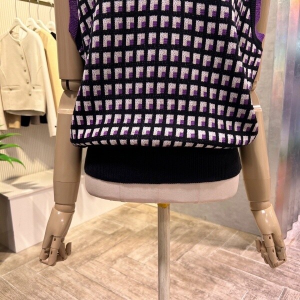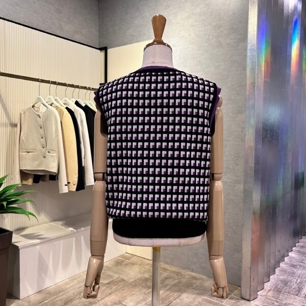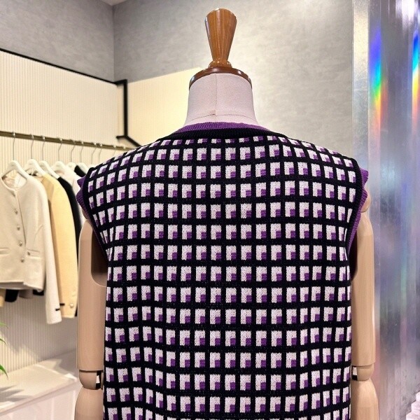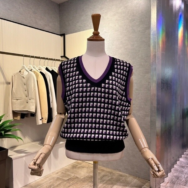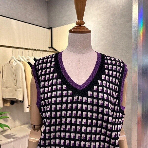 2024년 f/w 신상V넥 배색 패턴 민소매 니트?입니다.