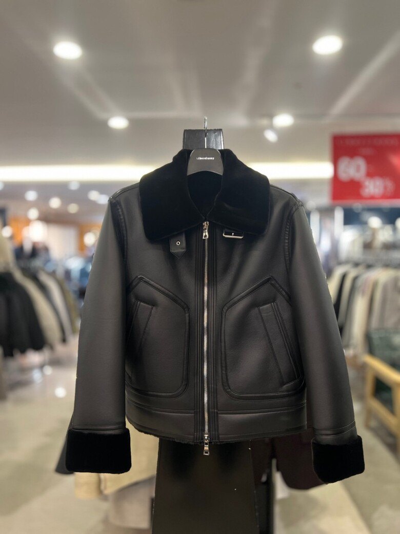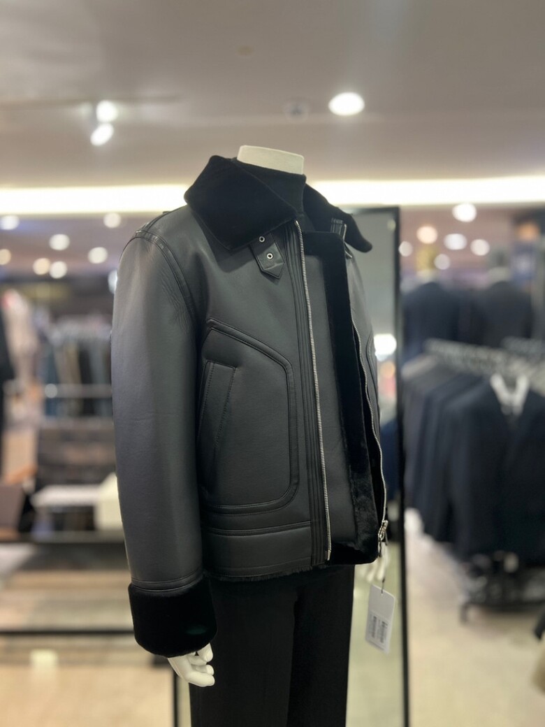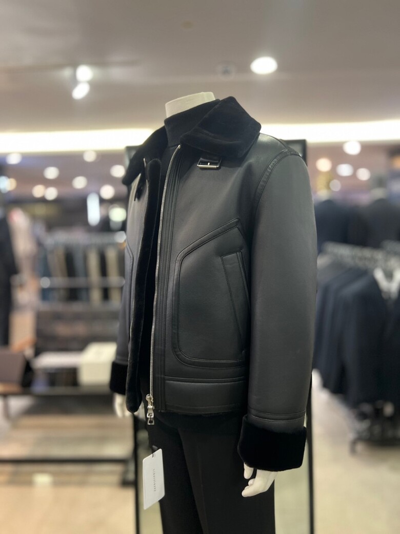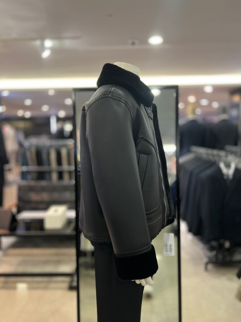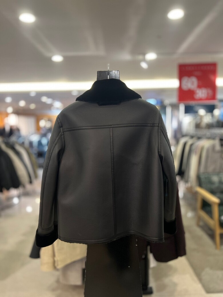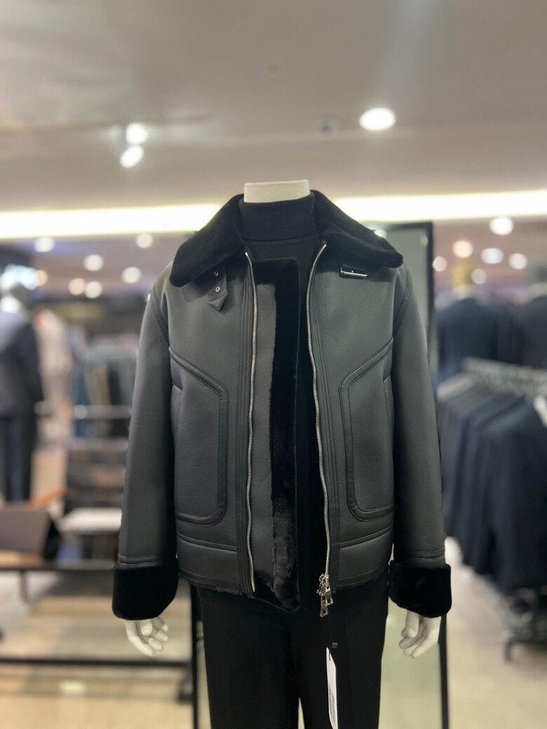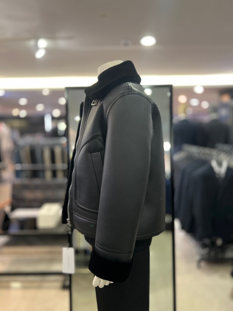 블랙 세미오버핏 램터치 무스탕 점퍼