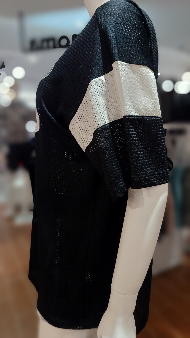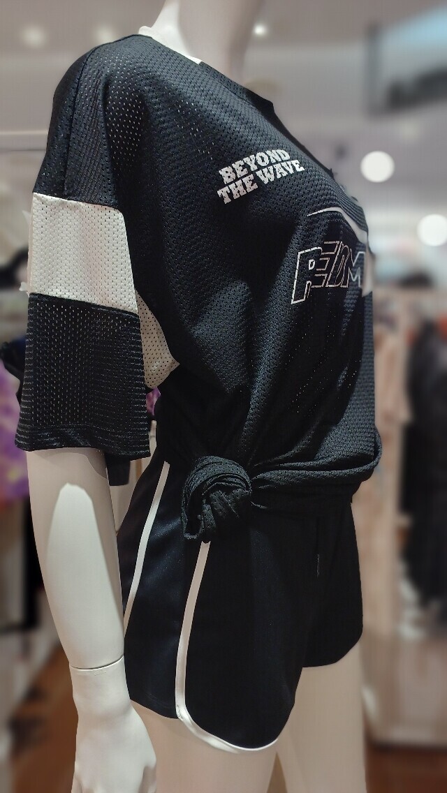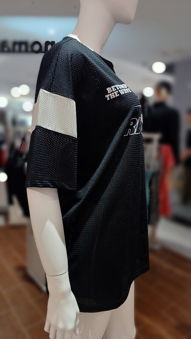 매쉬 소재를 사용해 시원해 보이는 느낌과 오버 핏 디자인으로 수영복 커버업이나 평상복으로도 착용가능한 매쉬 반팔 래쉬가드 입니다.