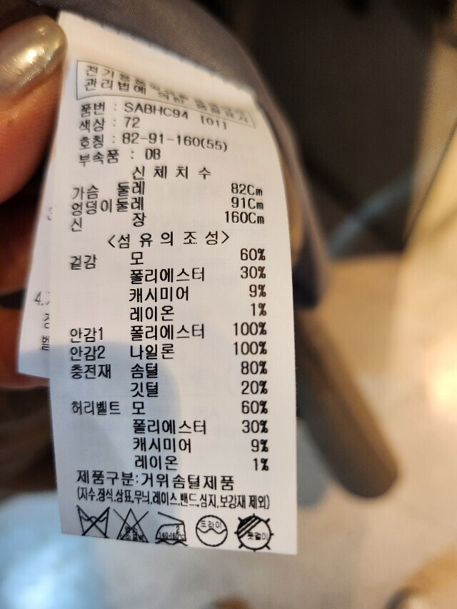 | 6. 세탁방법 및 취급시 주의사항 | 상품상세참조 |