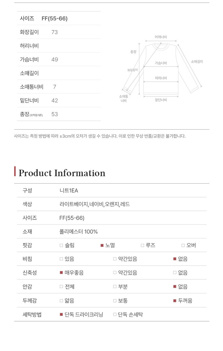 2. 색상 | 라이트베이지,네이비,오렌지,레드 |