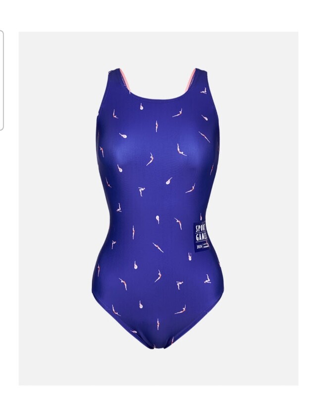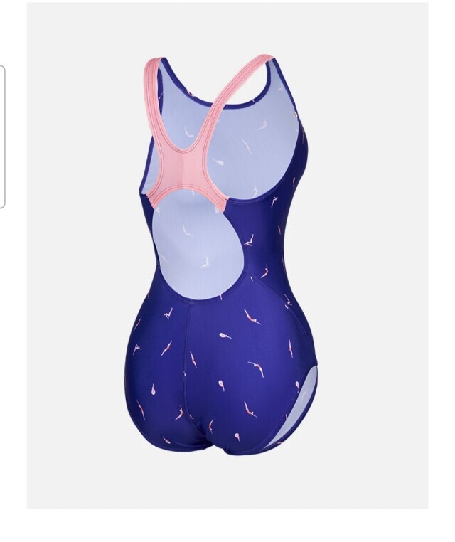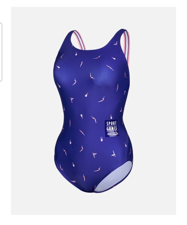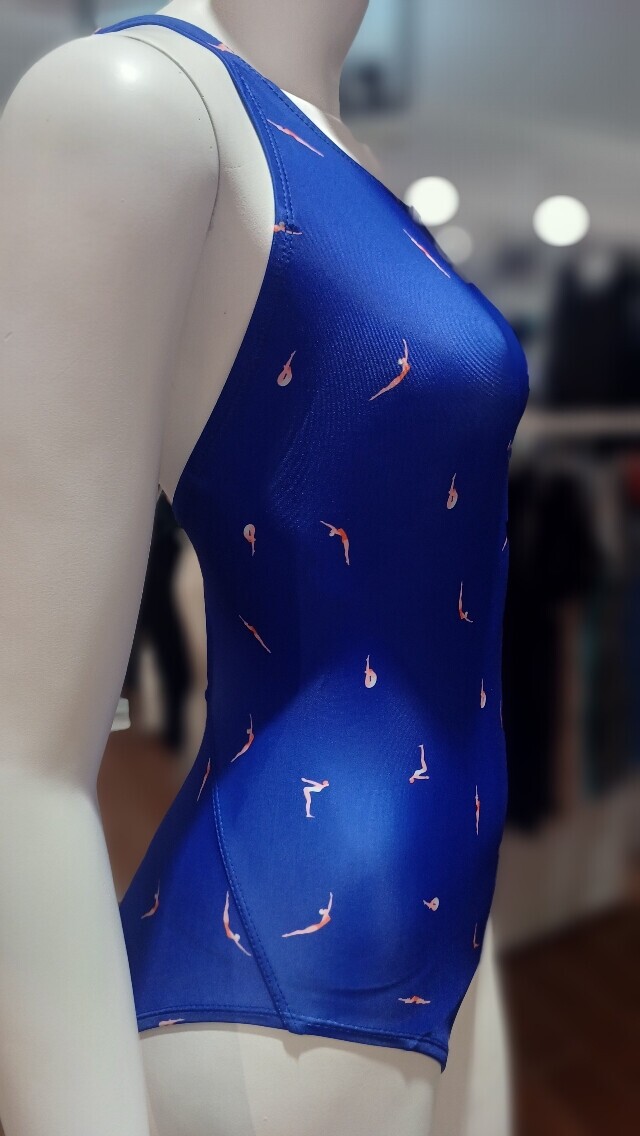 다이빙 프린트가 포인트인 여성 X백 원피스 수영복입니다.