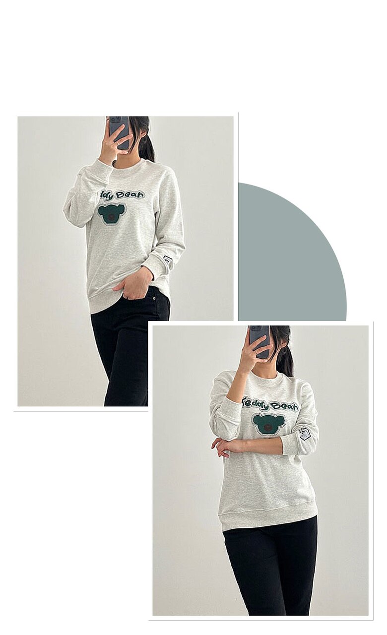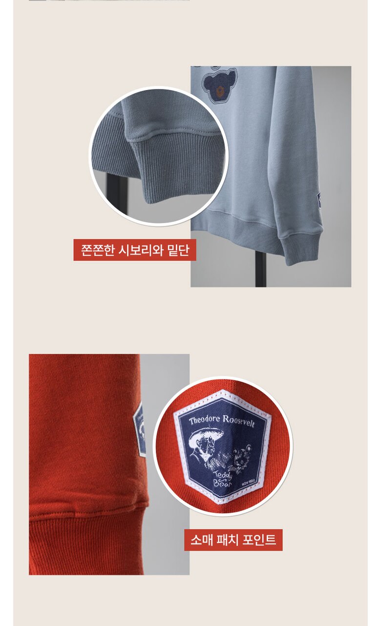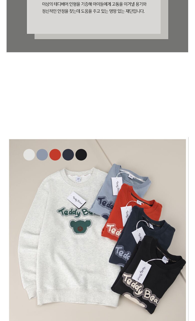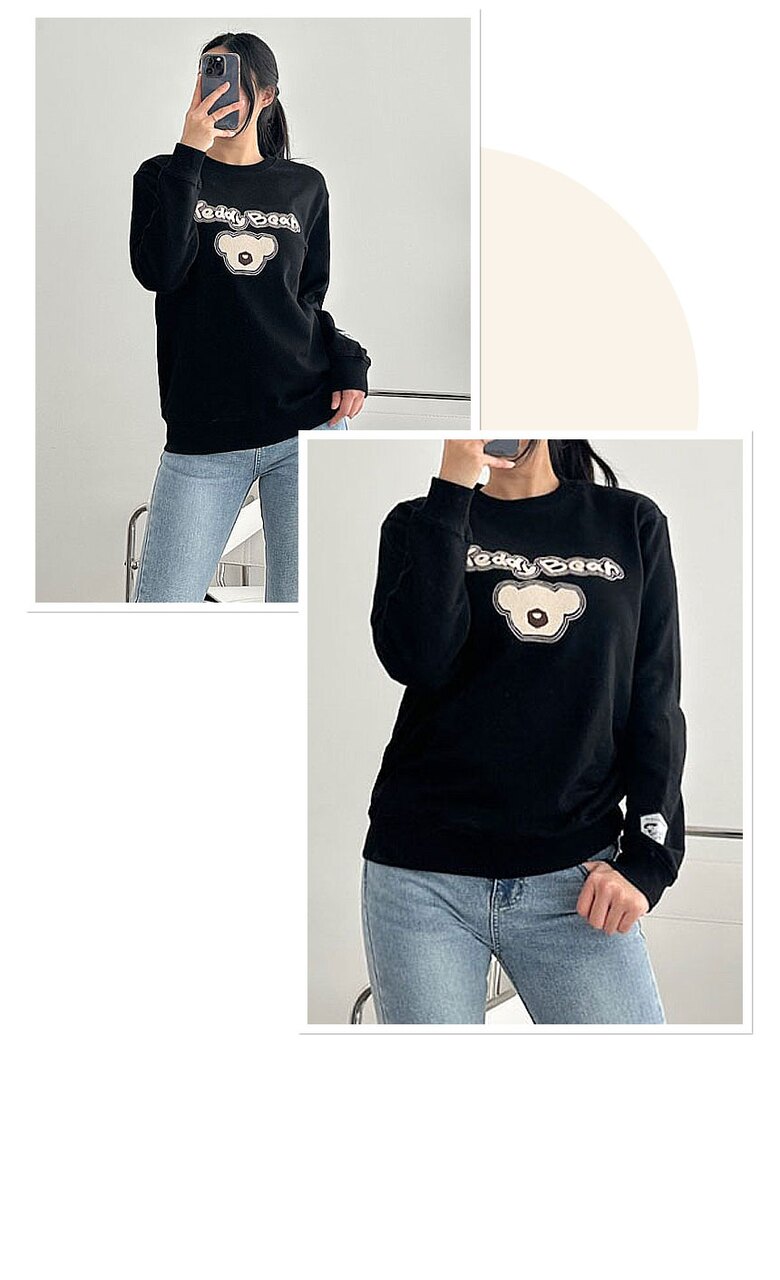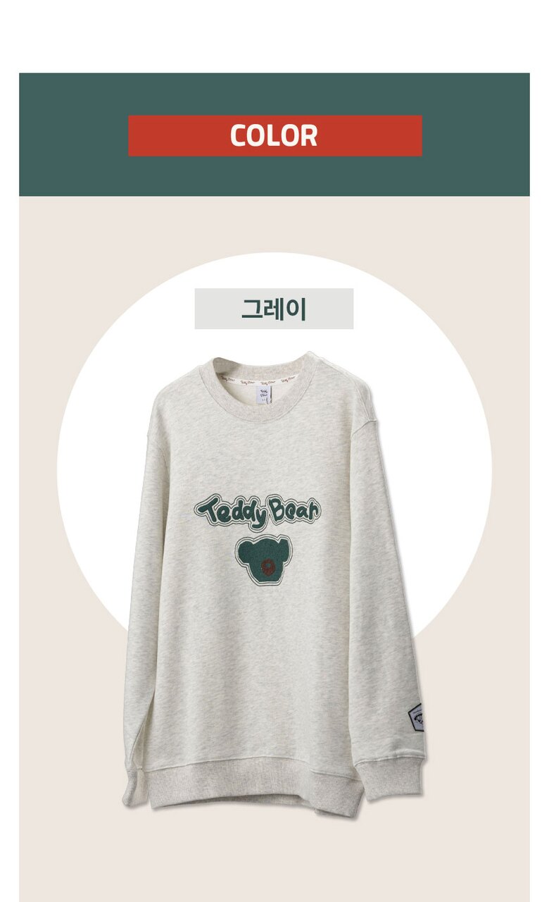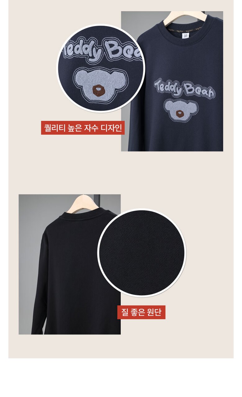 TR테디베어(Teddy Bear) 남녀공용 아플리케 로고 맨투맨