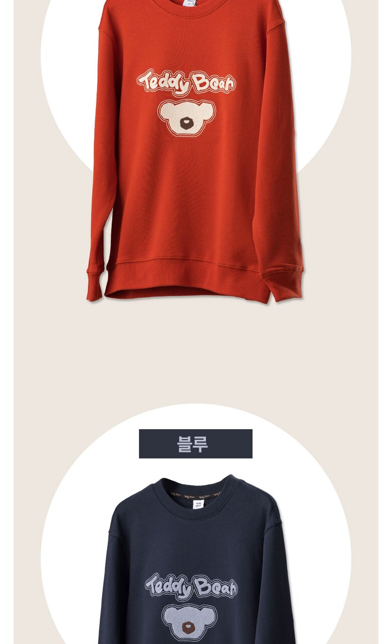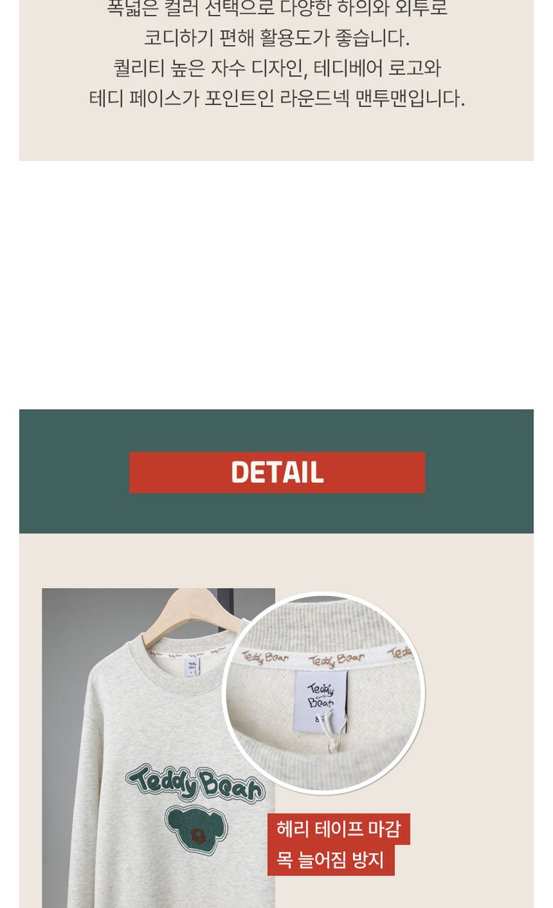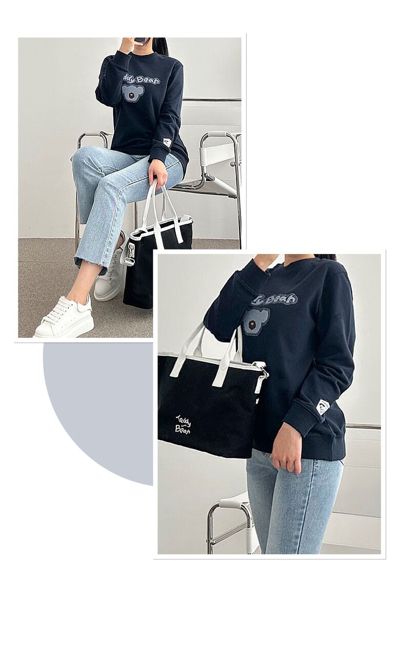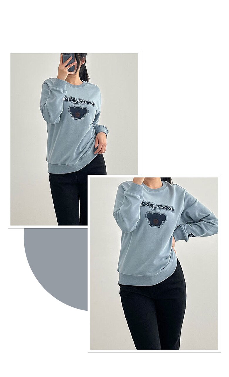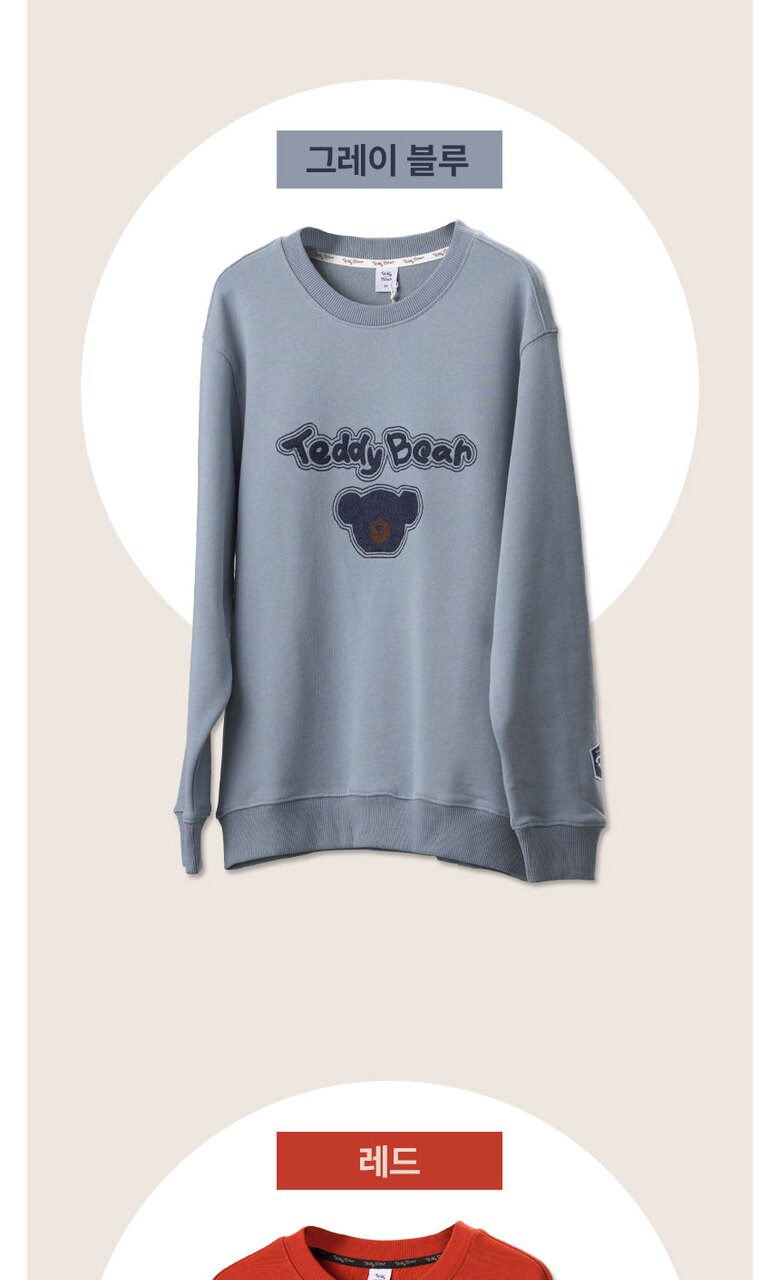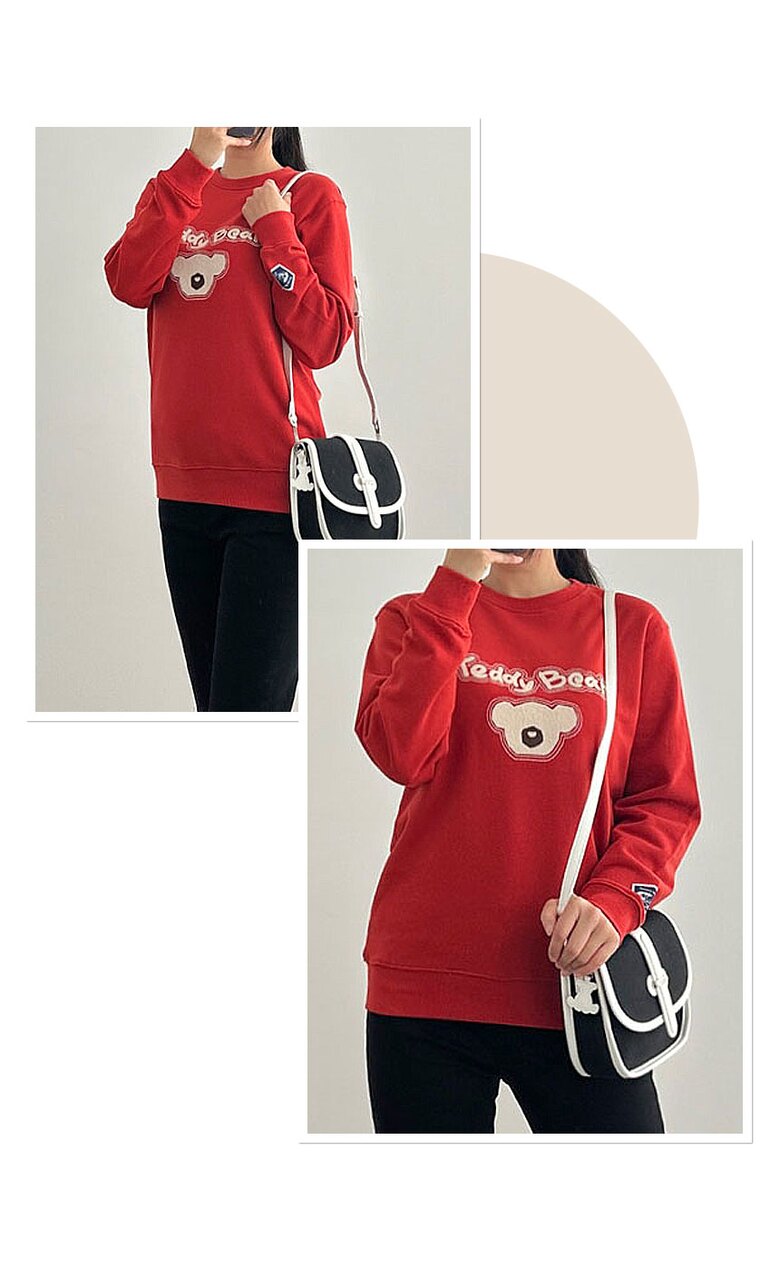 TR테디베어(Teddy Bear) 남녀공용 아플리케 로고 맨투맨