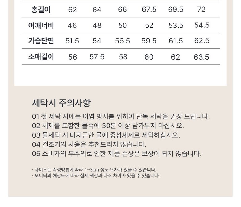 6. 세탁방법 및 취급시 주의사항 | 상세페이지 참조 |