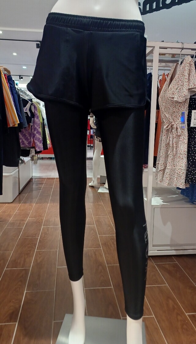 팬츠와 이너 레깅스가 일체형 스타일로 착용하기 편하며 레터링 로고가 포인트 인 비치 워터 레깅스입니다.