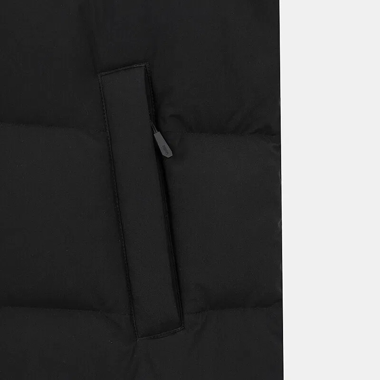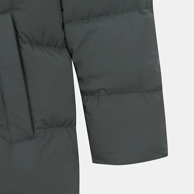 겉감 폴리에스터 100% / 배색 폴리에스터 100% / 소맷단 폴리에스터 99% / 소맷단 폴리우레탄 1% / 안감1 나일론 100% / 안감2 폴리에스터 100% / 주머니안감 폴리에스터 100% / 충전재 거위솜털 80% / 충전재 거위깃털 20%