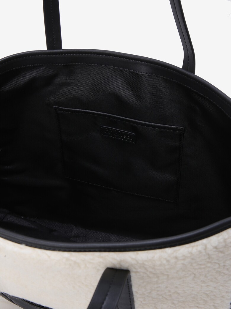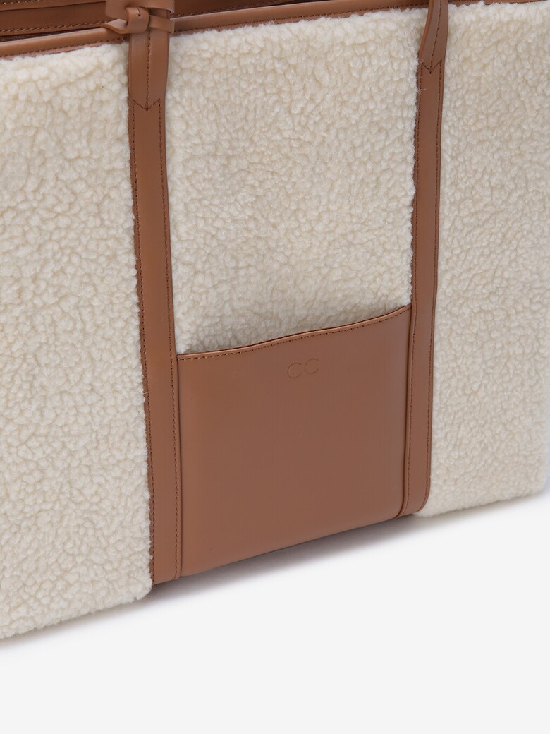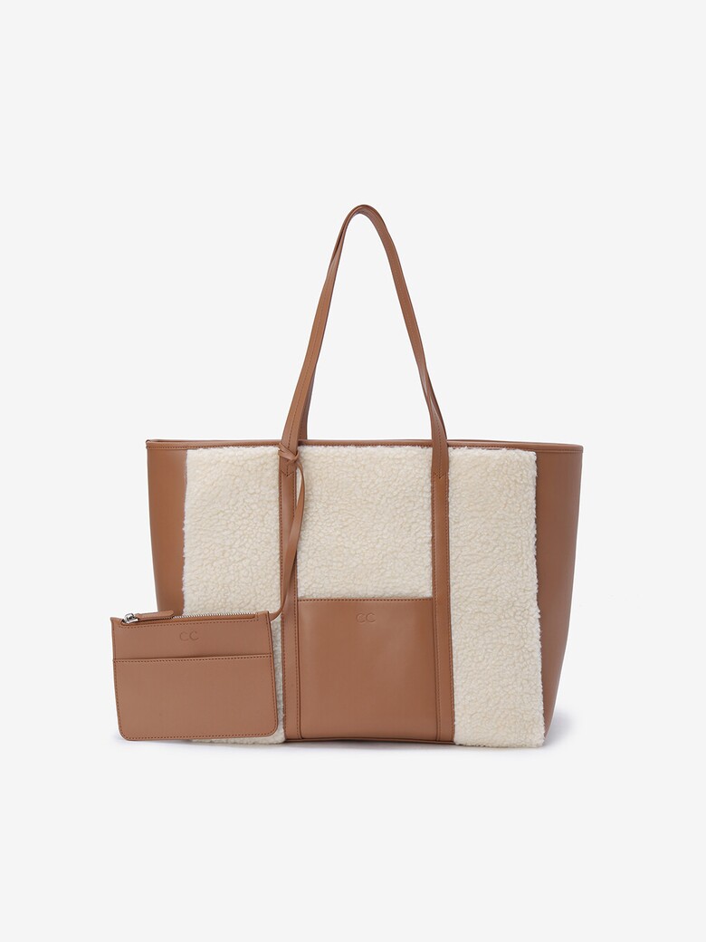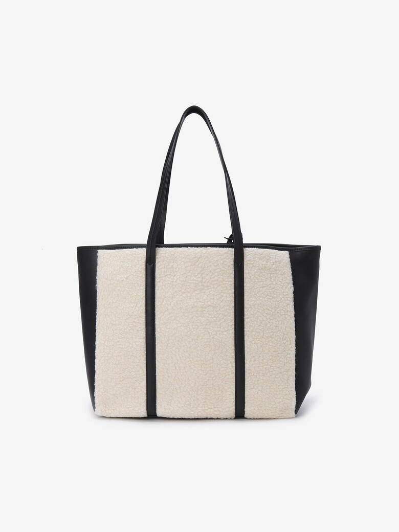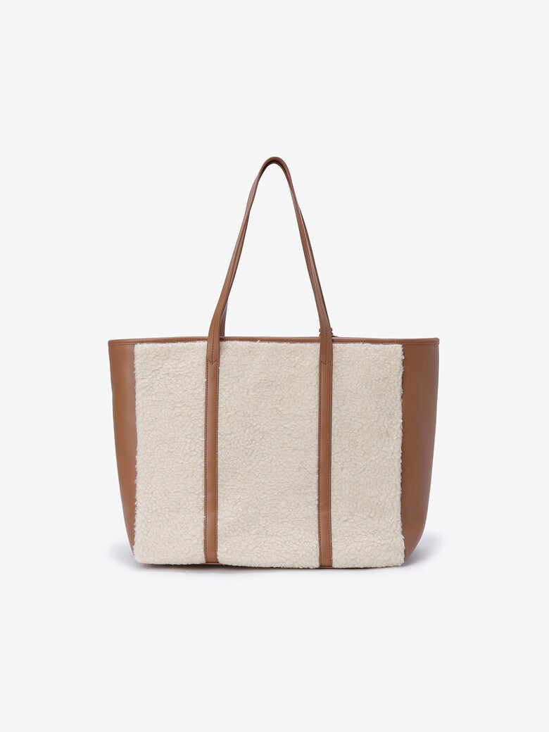 - 고급스러운 천연 소가죽에 뽀글이 원단을 패치한 빅 사이즈의 쇼퍼백입니다.