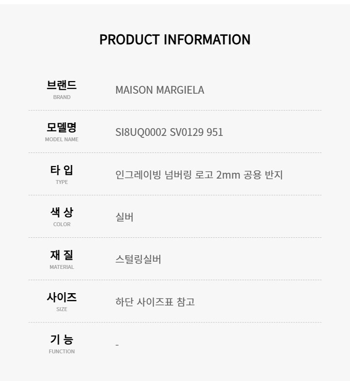 메종마르지엘라 SI8UQ0002 SV0129 951 인그레이빙 넘버링 로고 2mm 실버 반지