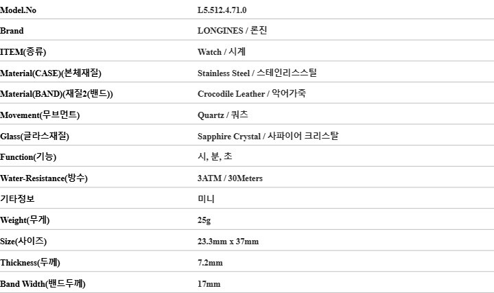 1. 소재 / 순도 / 밴드재질 | 아이보리/ 케이스 - 스테인리스스틸 / 밴드 - 악어가죽 |