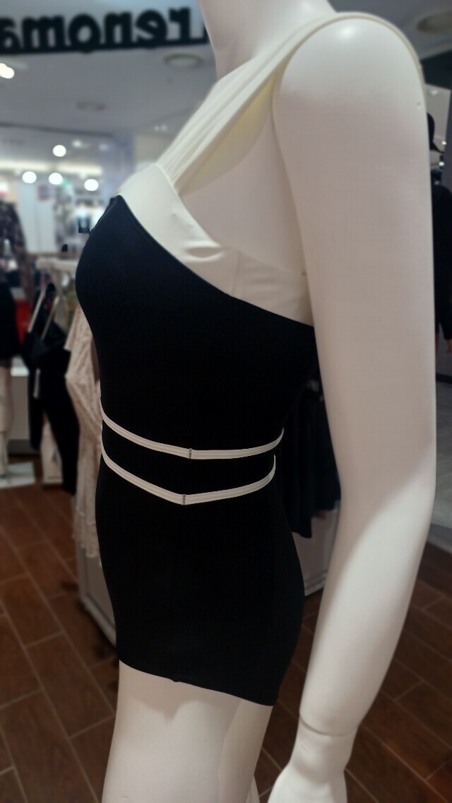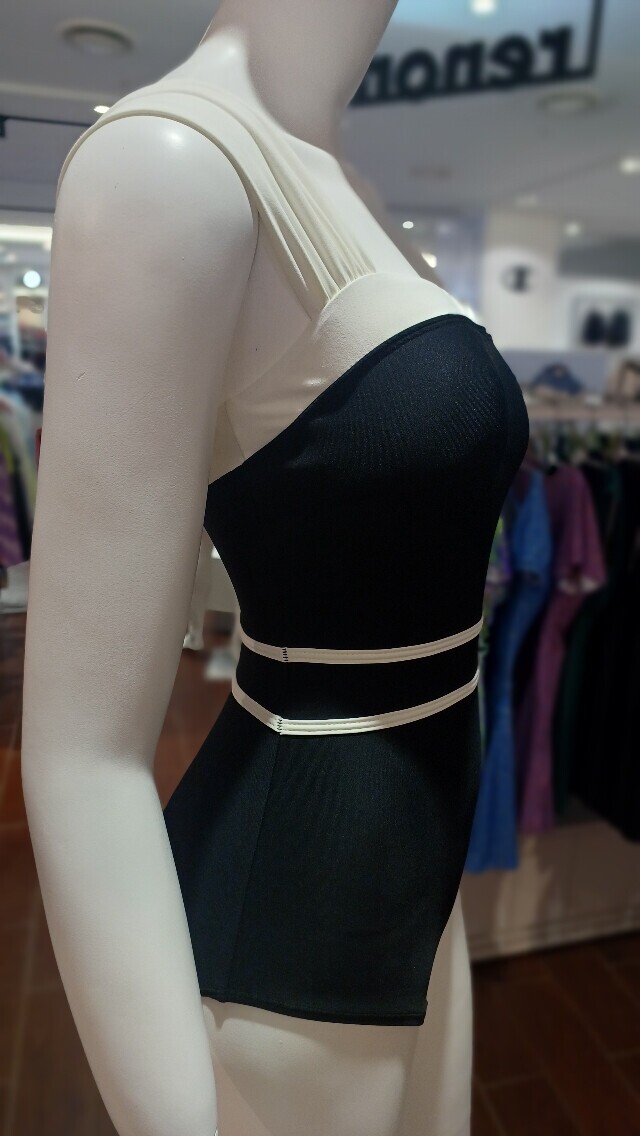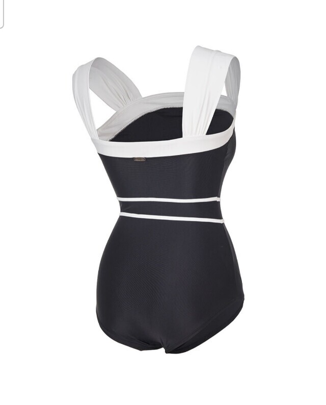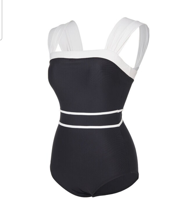 오프 숄더 타입으로 허리 라인을 강조해 더 욱 날씬해 보이며 베이직하지만 아주 고급스러운 느낌의 여성 비치 원피스 수영복 입니다.