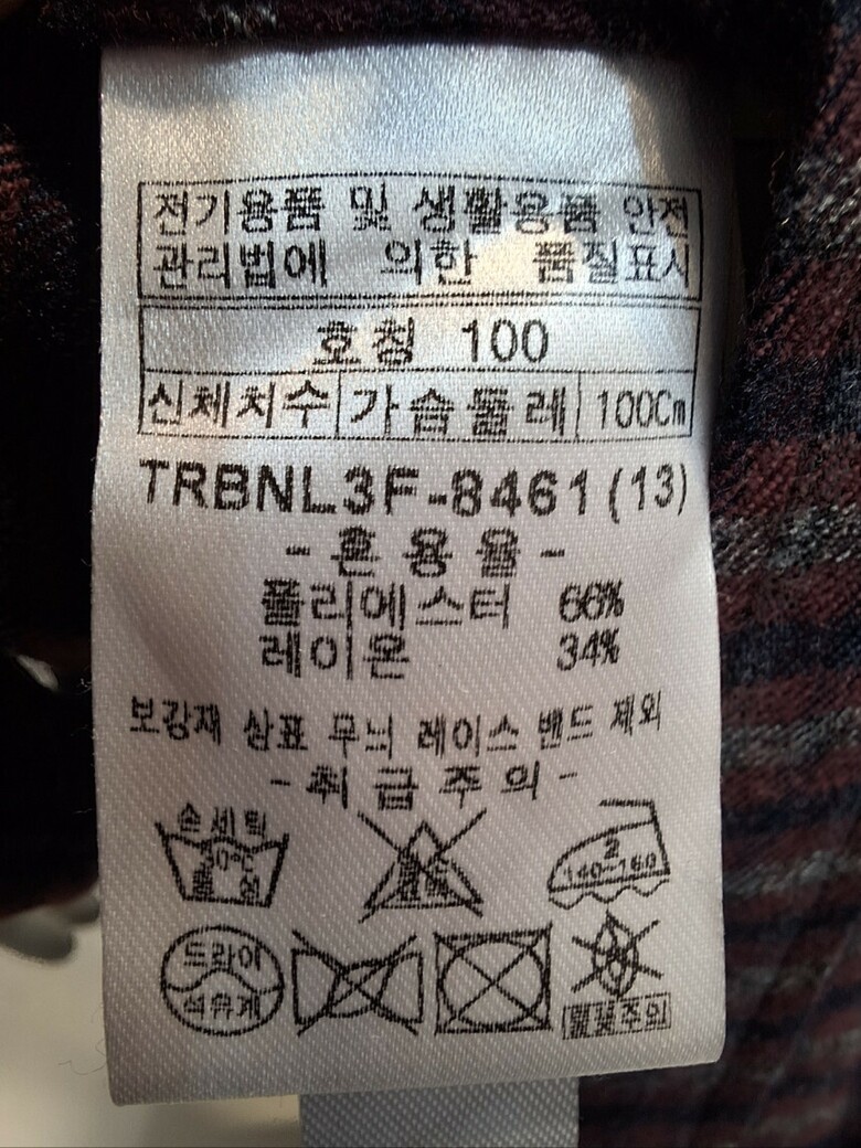 | 1. 제품 소재 (섬유의 조성 또는 혼용률을 백분율로 표시, 기능성인 경우 성적서 또는 허가서) | 겉감:폴리에스테르 66%, 레이온 34% / 레이온 34% |