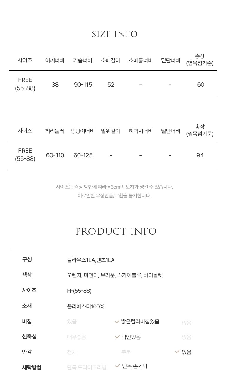 • 처음 배송된 상품상태와 다를 경우(세탁/착용 후 외출하신 경우) 반품이 불가합니다.