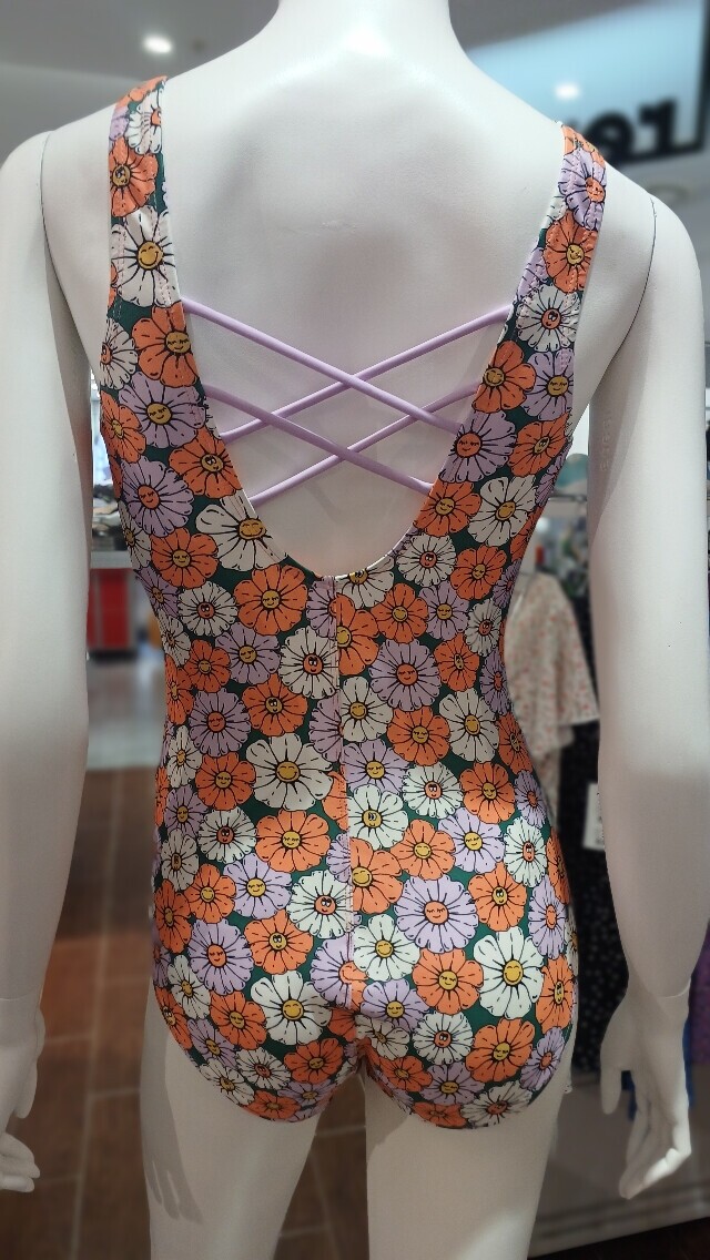 착용하기 편한 U백 원피스로 등선 끈이 포인트인 수영복입니다.