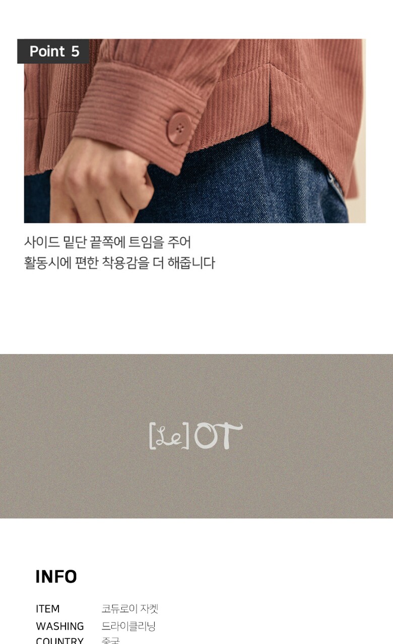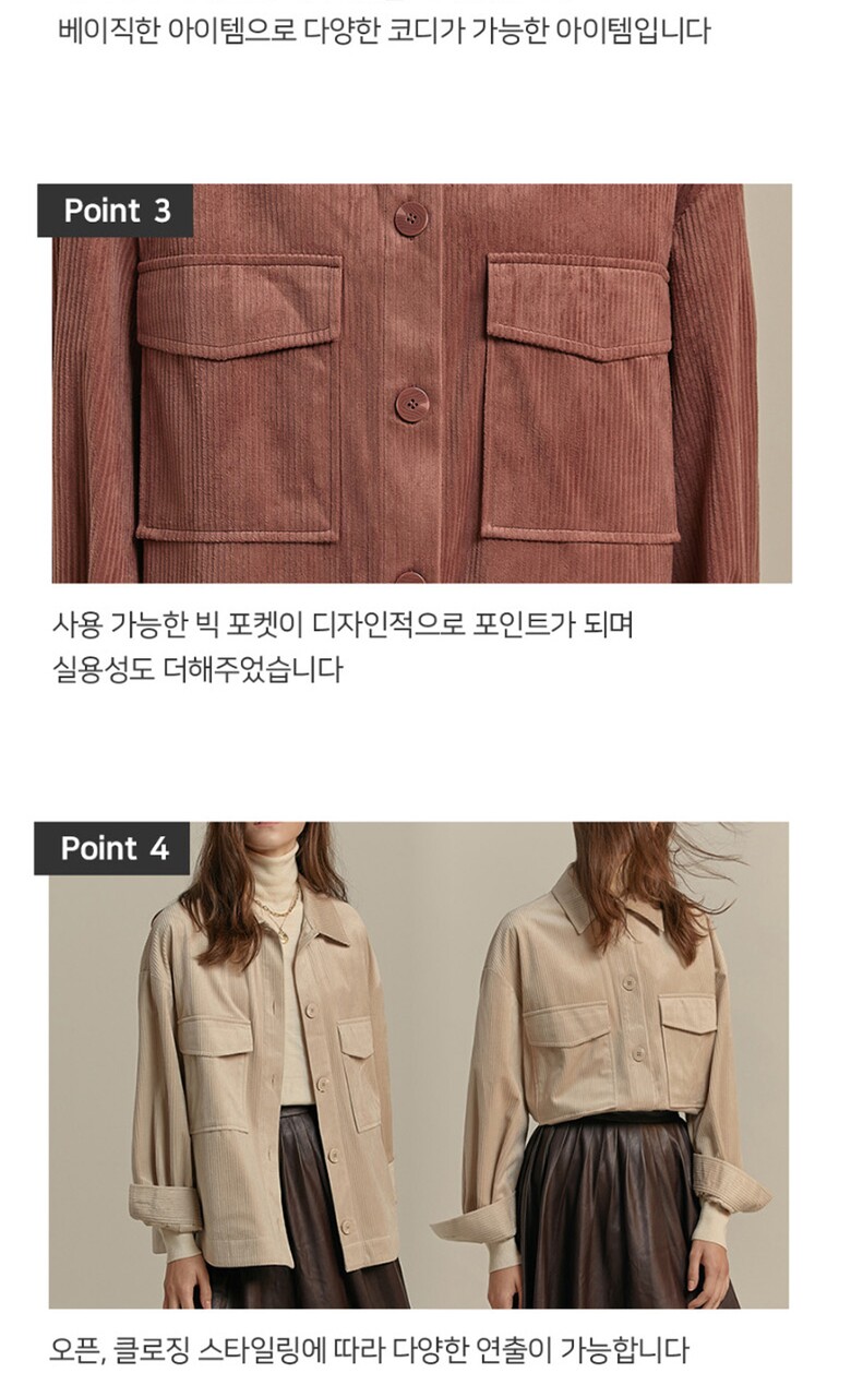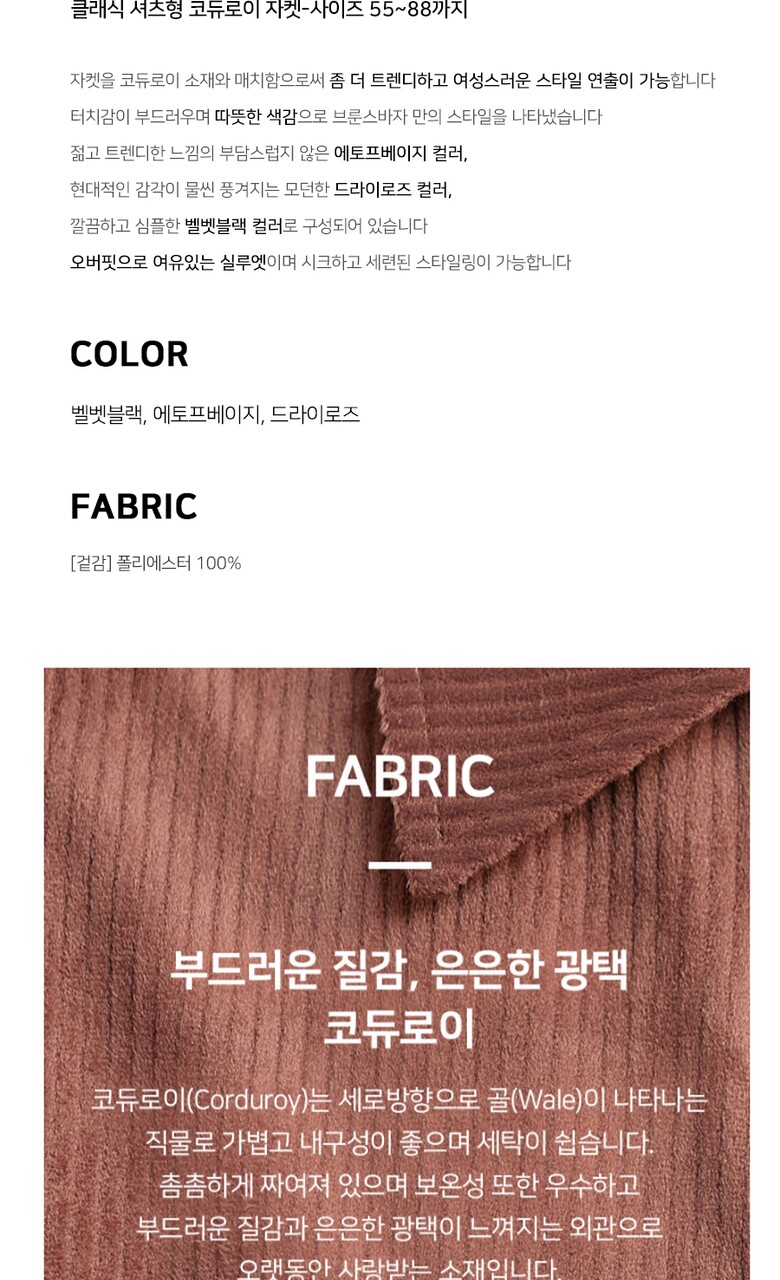 [홈쇼핑방송/르오트(LeOT)] 클래식 셔츠형 코듀로이 자켓-사이즈 55~88까지