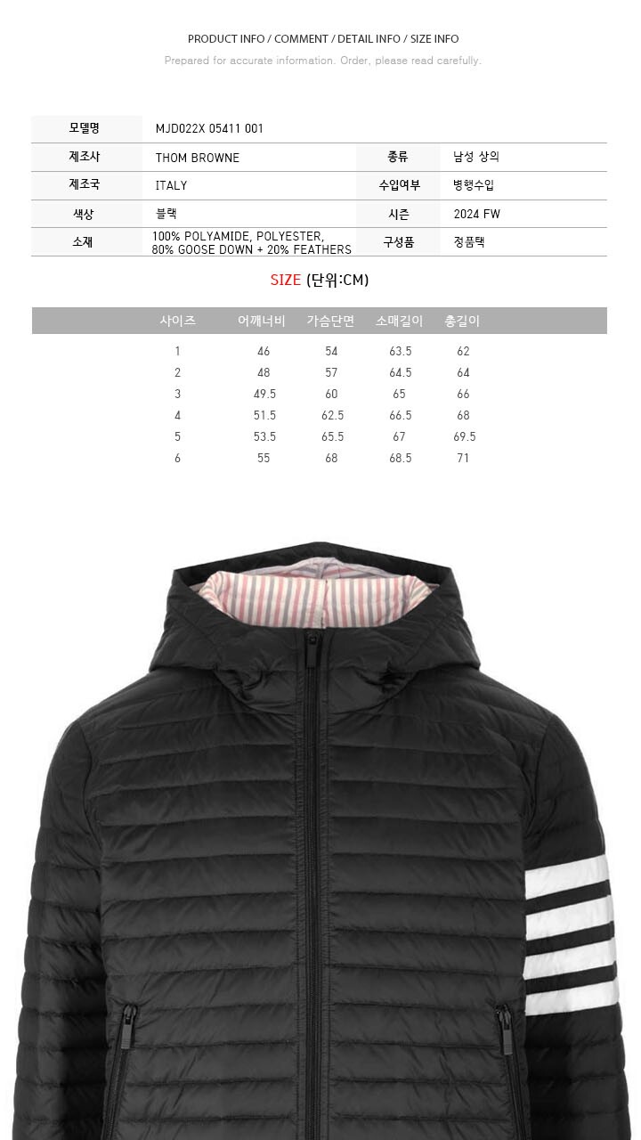 톰브라운 24FW 사선완장 다운필드 후드 패딩 자켓 블랙 MJD022X 05411 001
