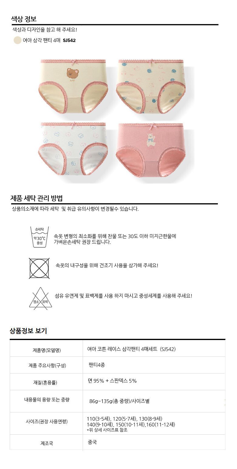 여아 코튼 레이스 삼각팬티 4매세트(SJ542)