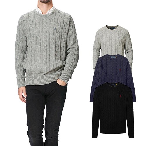 폴로랄프로렌 남성용 케이블 포니자수 라운드 니트
