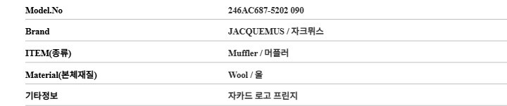 자크뮈스 머플러 246AC687-5202 090 레샤프 자카드 로고 프린지 머플러 당일발송