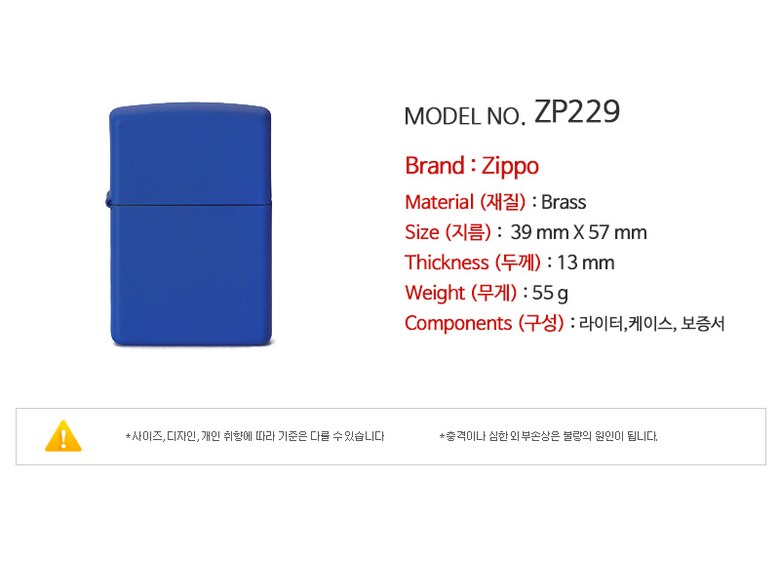 지포 ZP229 클래식 로얄 블루 매트 라이터