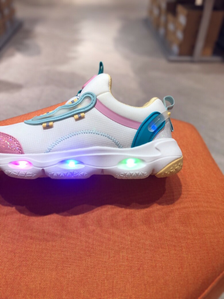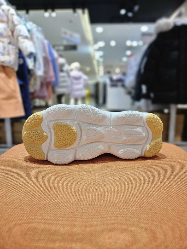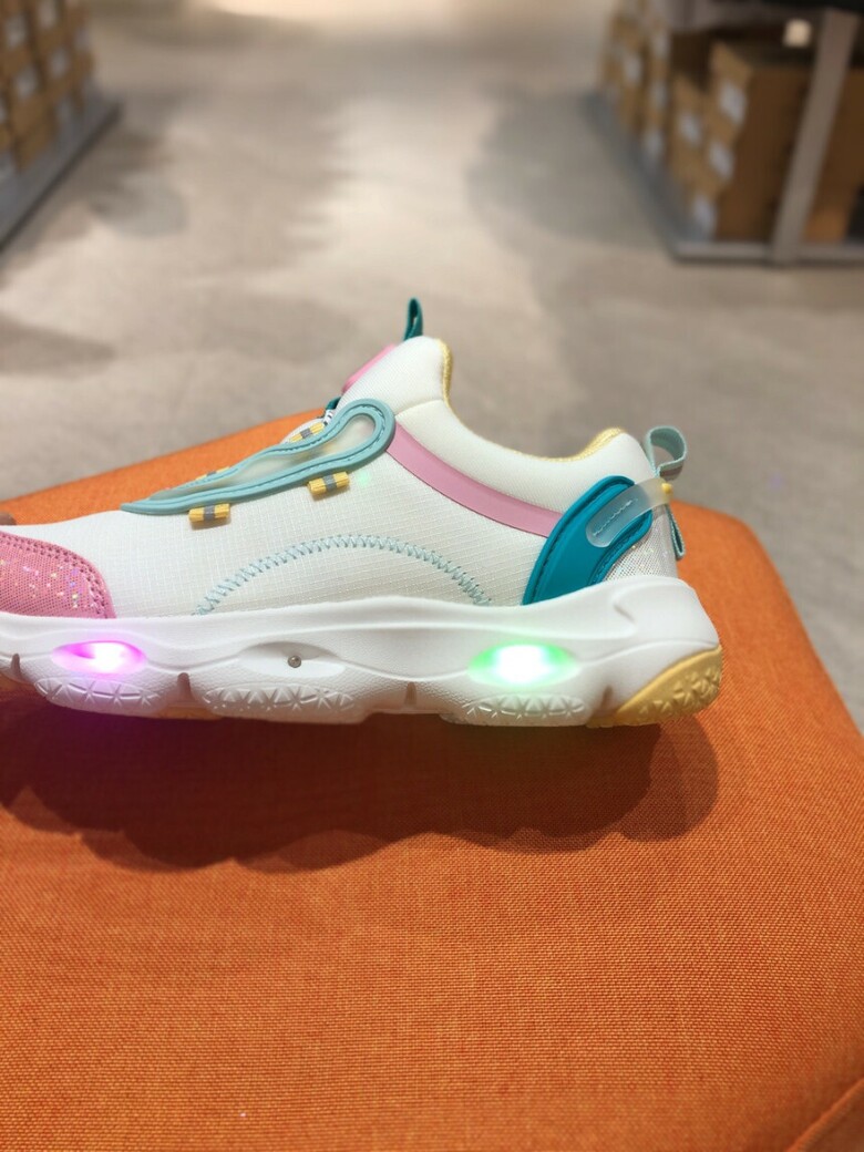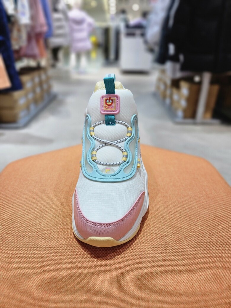 - 휠라키즈 고유의 슬립온 쉐입과 핏을 유지하면서 아웃솔에 라이트가 들어와 아이들의 눈길을 사로잡으며 발등 윗부분 F 로고를 눌러 라이트 ON/OFF 조절 가능