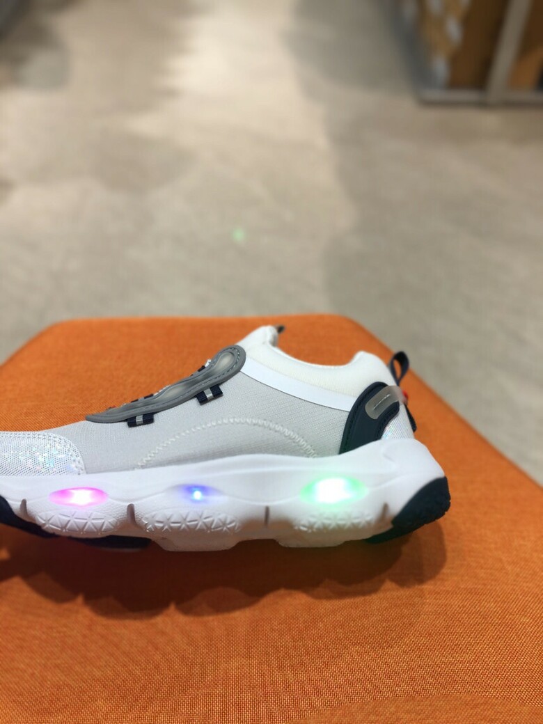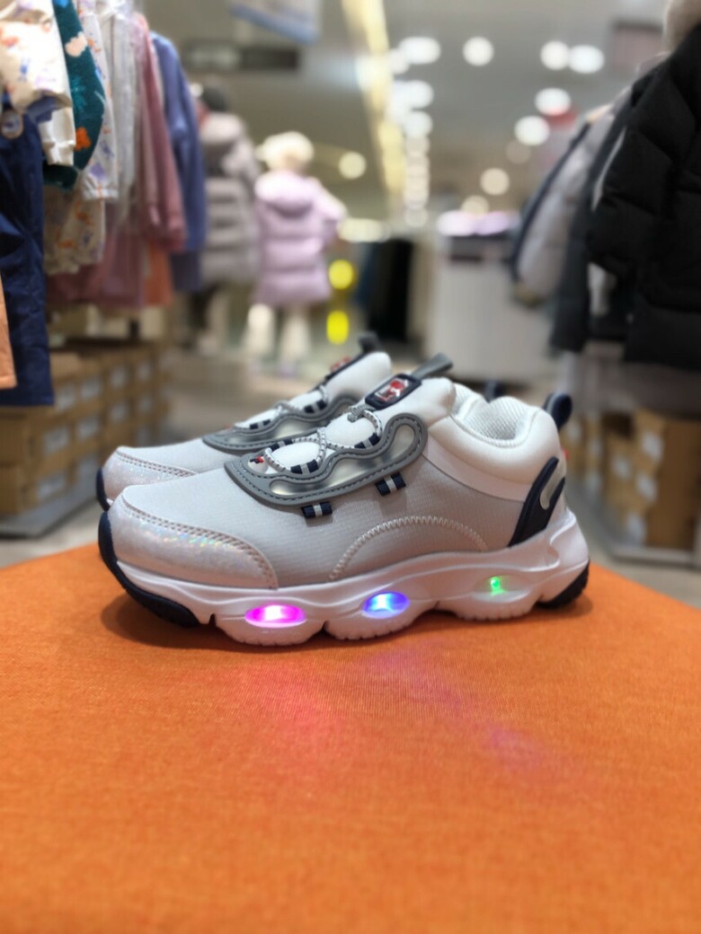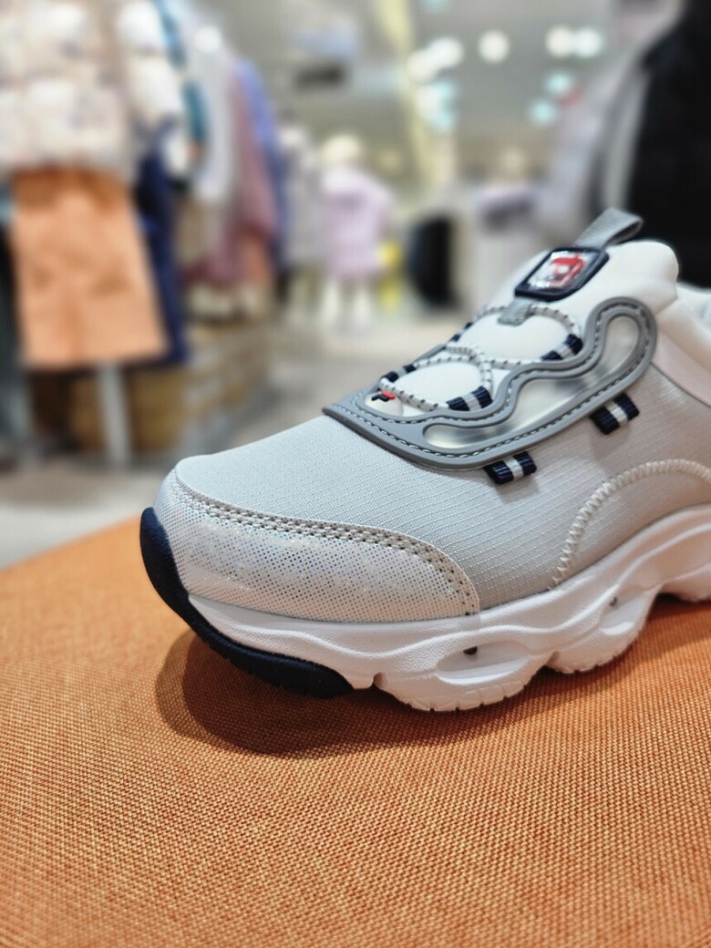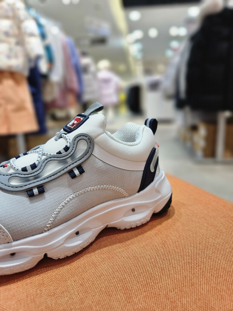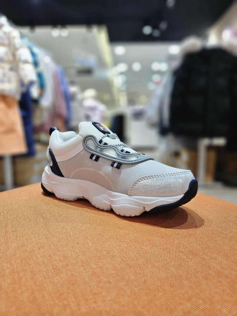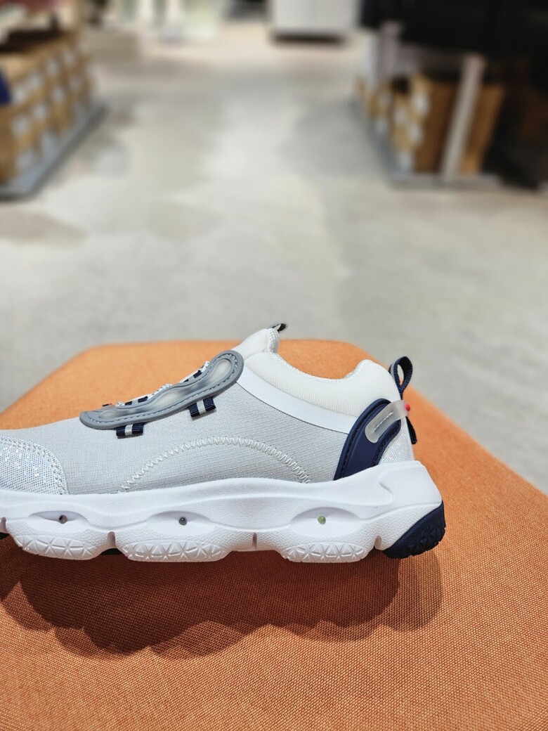 - 휠라키즈 고유의 슬립온 쉐입과 핏을 유지하면서 아웃솔에 라이트가 들어와 아이들의 눈길을 사로잡으며 발등 윗부분 F 로고를 눌러 라이트 ON/OFF 조절 가능