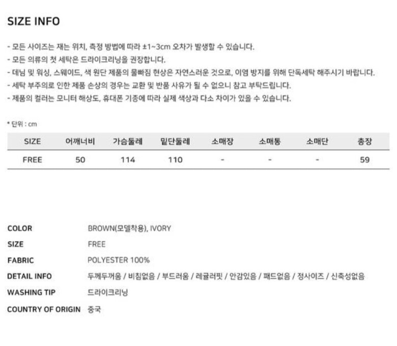 1. 제품 소재 (섬유의 조성 또는 혼용률을 백분율로 표시, 기능성인 경우 성적서 또는 허가서) | 상품상세참조 |