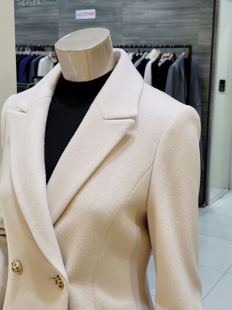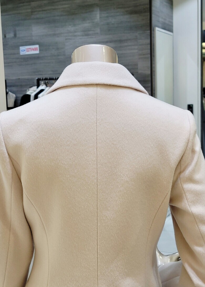 | 1. 제품 소재 (섬유의 조성 또는 혼용률을 백분율로 표시, 기능성인 경우 성적서 또는 허가서) | 겉감:모 90%, 캐시미어 10% / 안감:폴리에스테르 100% |