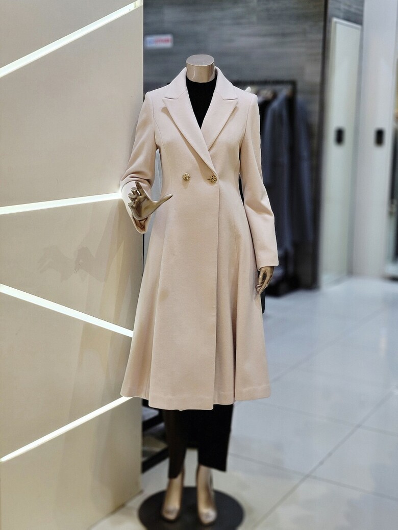 풍성하게 퍼지는 플레어 디자인으로 매력적인 코트입니다.