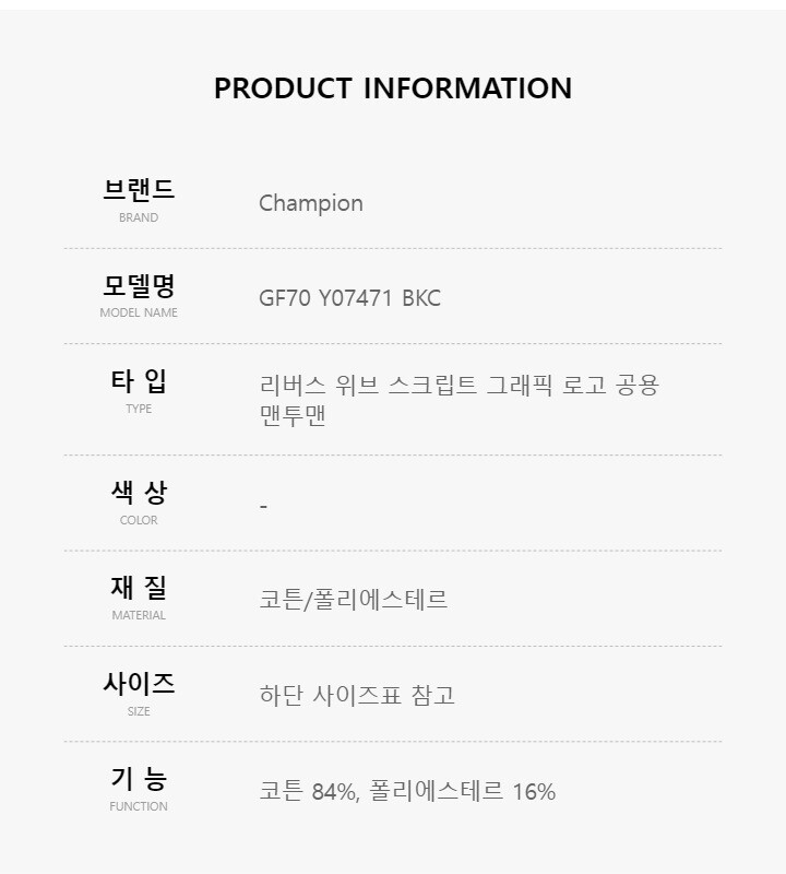 챔피온 맨투맨 GF70 Y07471 BKC 리버스 위브 스크립트 그래픽 로고 남성맨투맨 당일발송