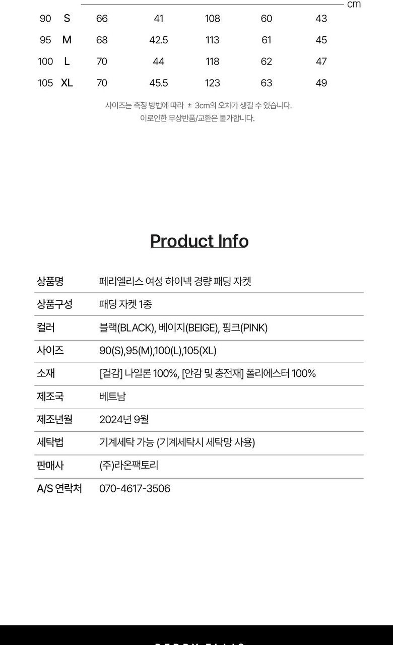 • 처음 배송된 상품상태와 다를 경우(세탁/착용 후 외출하신 경우) 반품이 불가합니다.