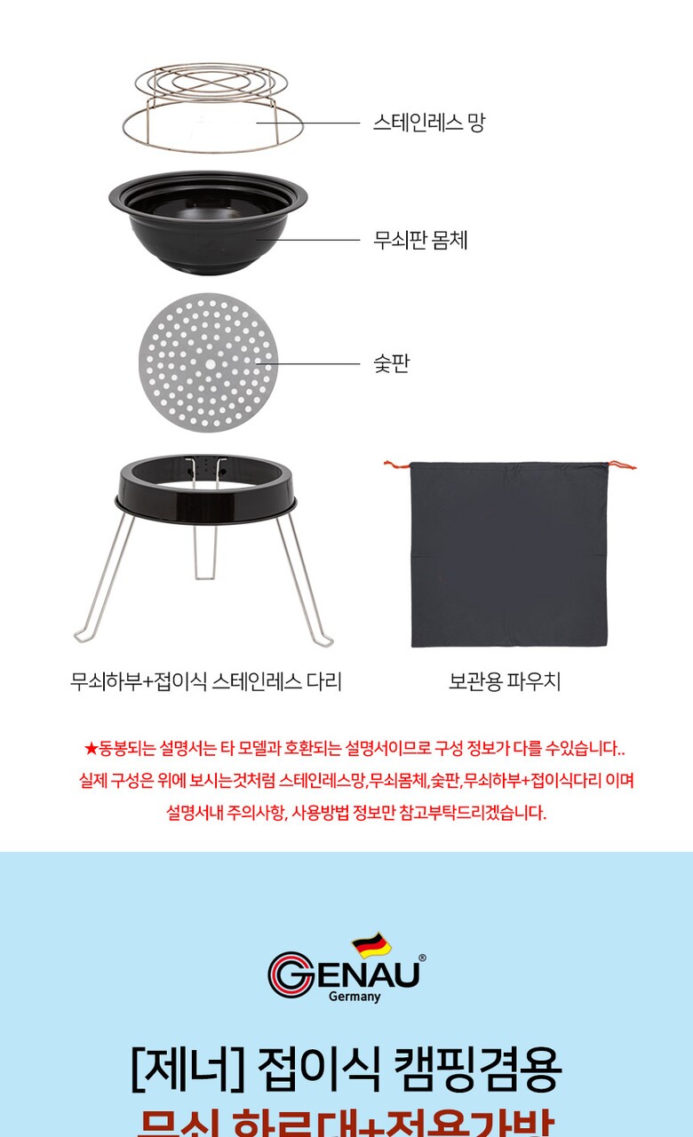 [독일 제너] 접이식 캠핑겸용 무쇠 화로대+전용가방