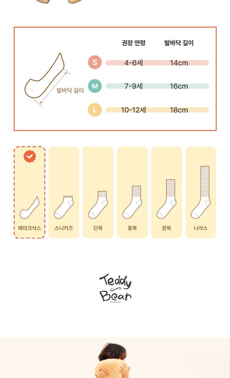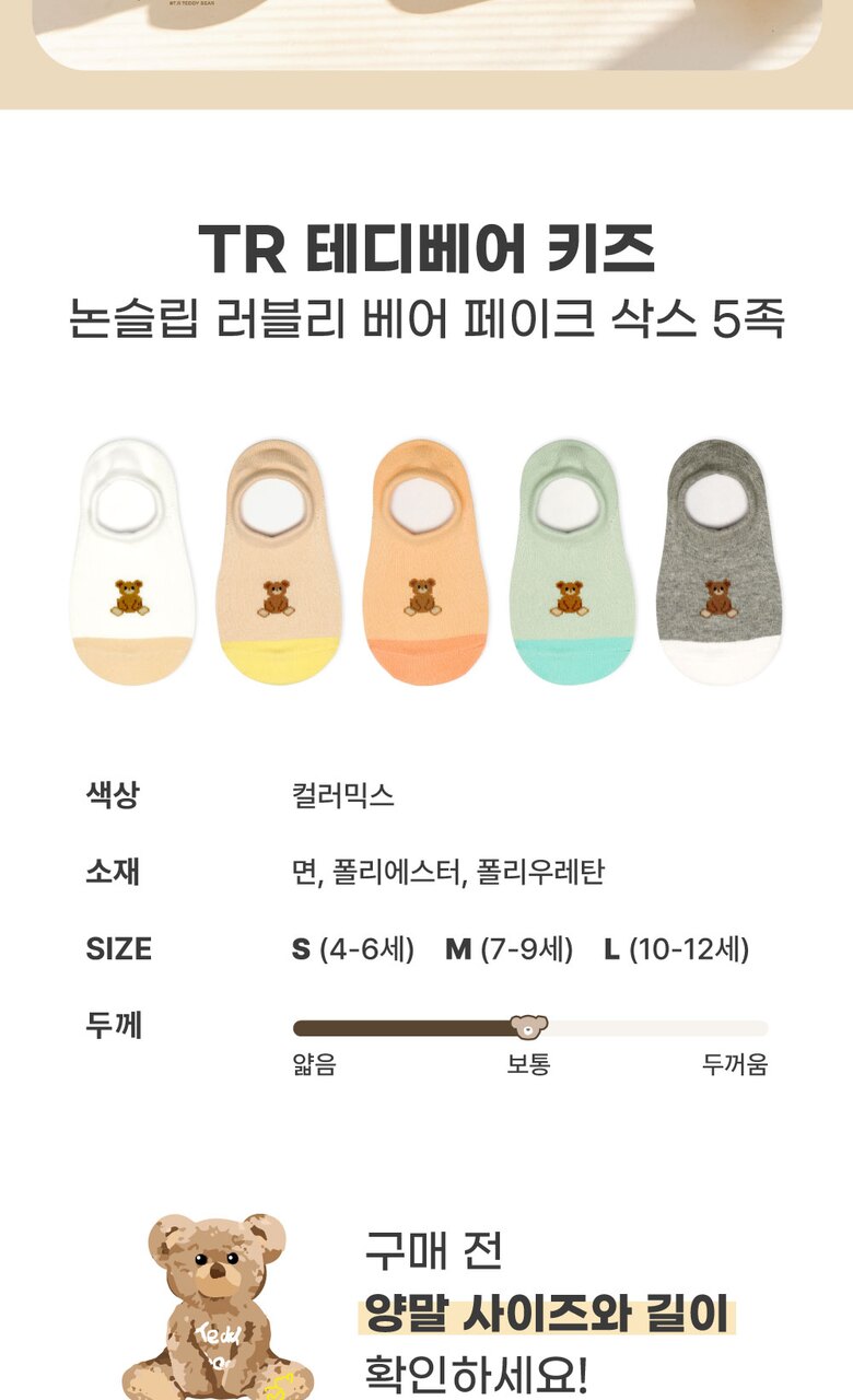 TR테디베어(Teddy Bear) 키즈 논슬립 러블리 베어 페이크 삭스 10족