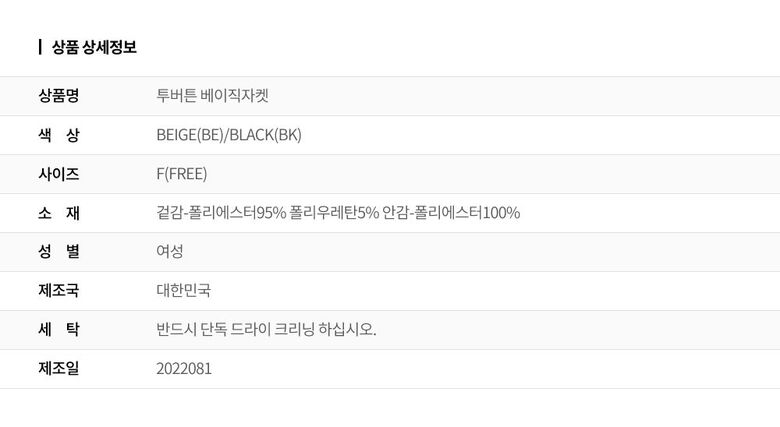 | 6. 세탁방법 및 취급시 주의사항 | 상세페이지 참조 |