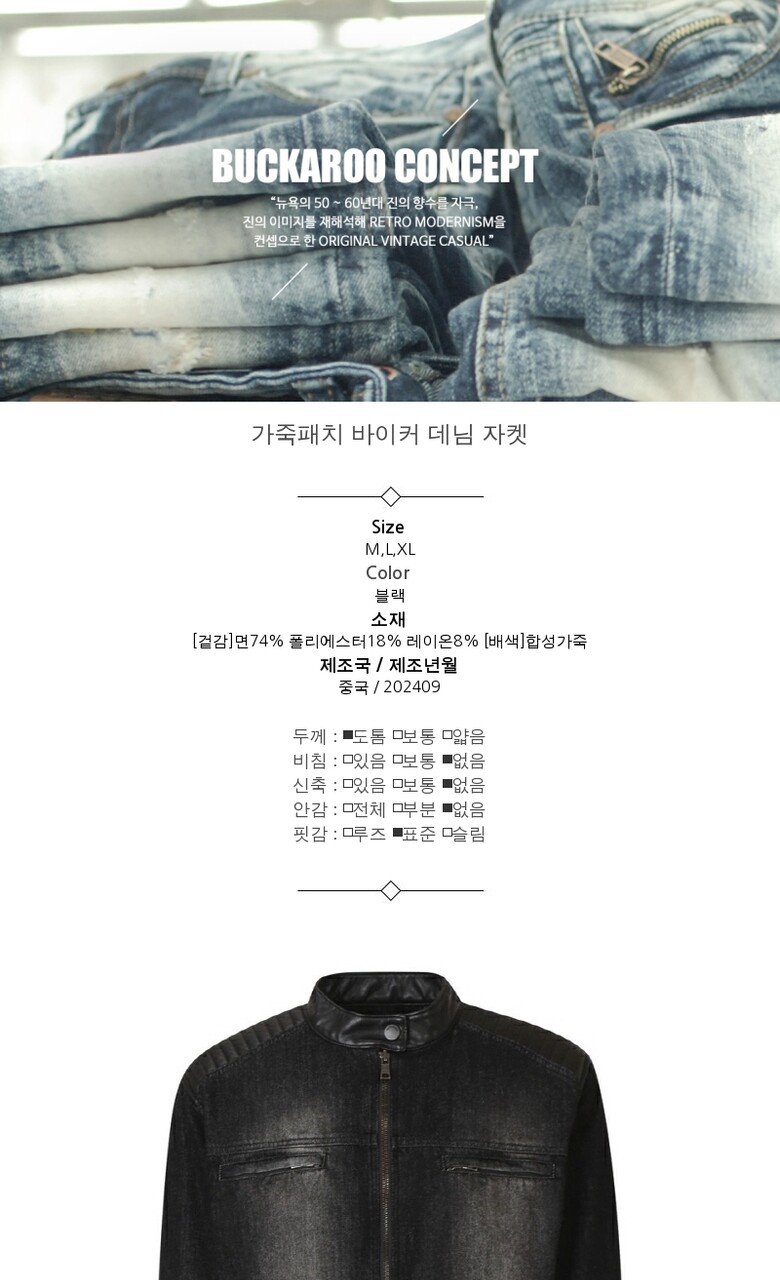[버커루] 가죽패치 바이커 데님 자켓 (B255DJ300P)