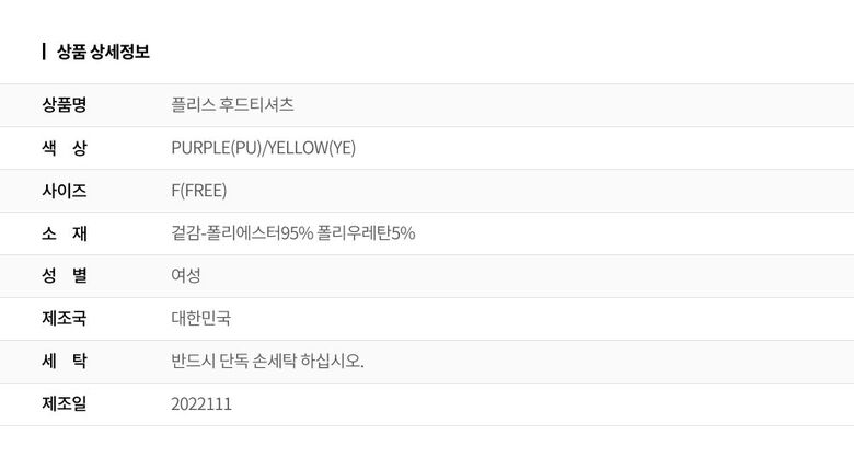 2. 색상 | 색상:PURPLE(PU)/YELLOW(YE) |