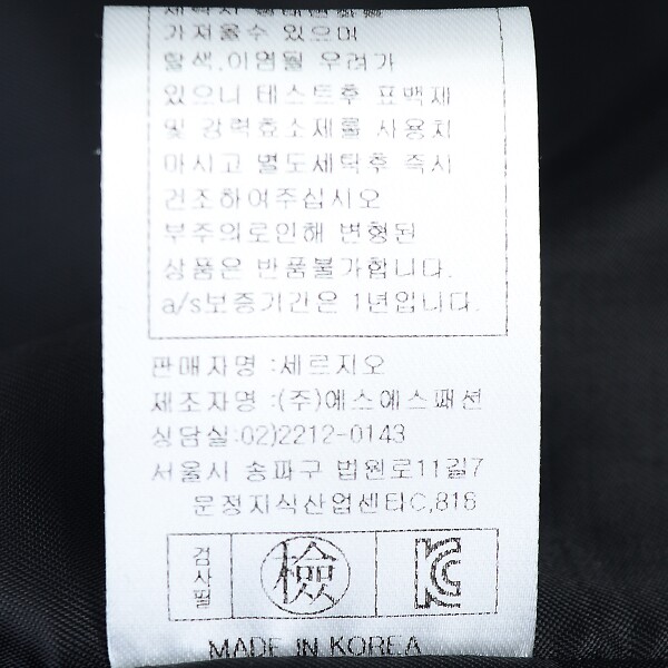 세탁방법 및 취급시 주의사항 : 드라이크리닝