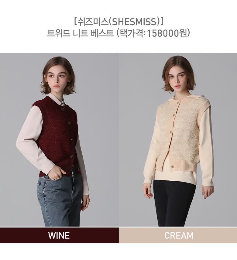 [쉬즈미스(SHESMISS)] 트위드 니트 베스트 (택가격:158000원)