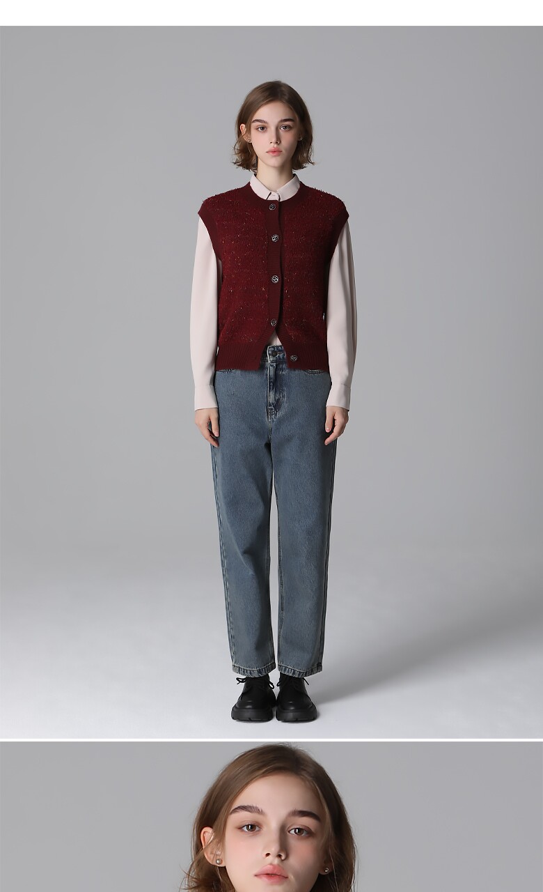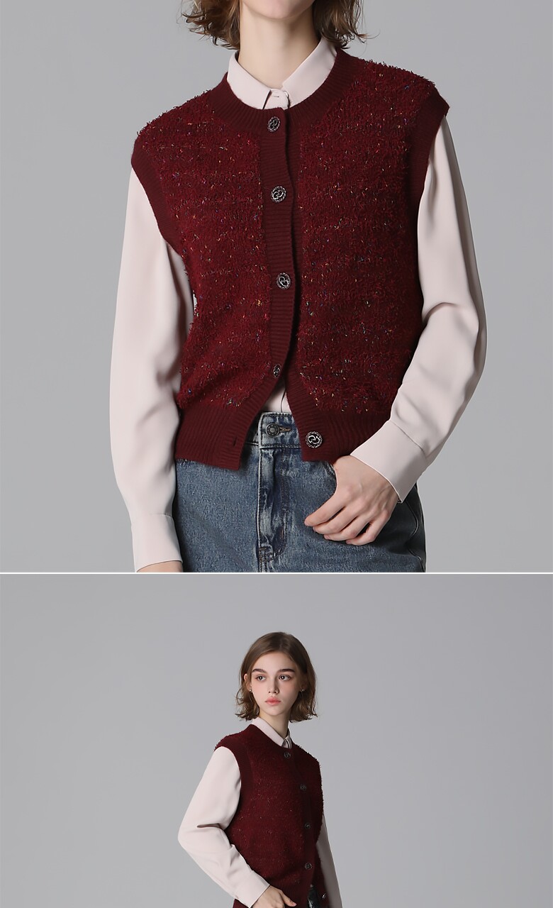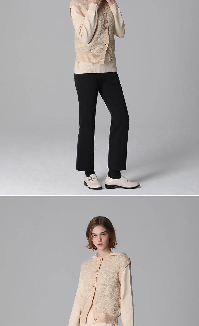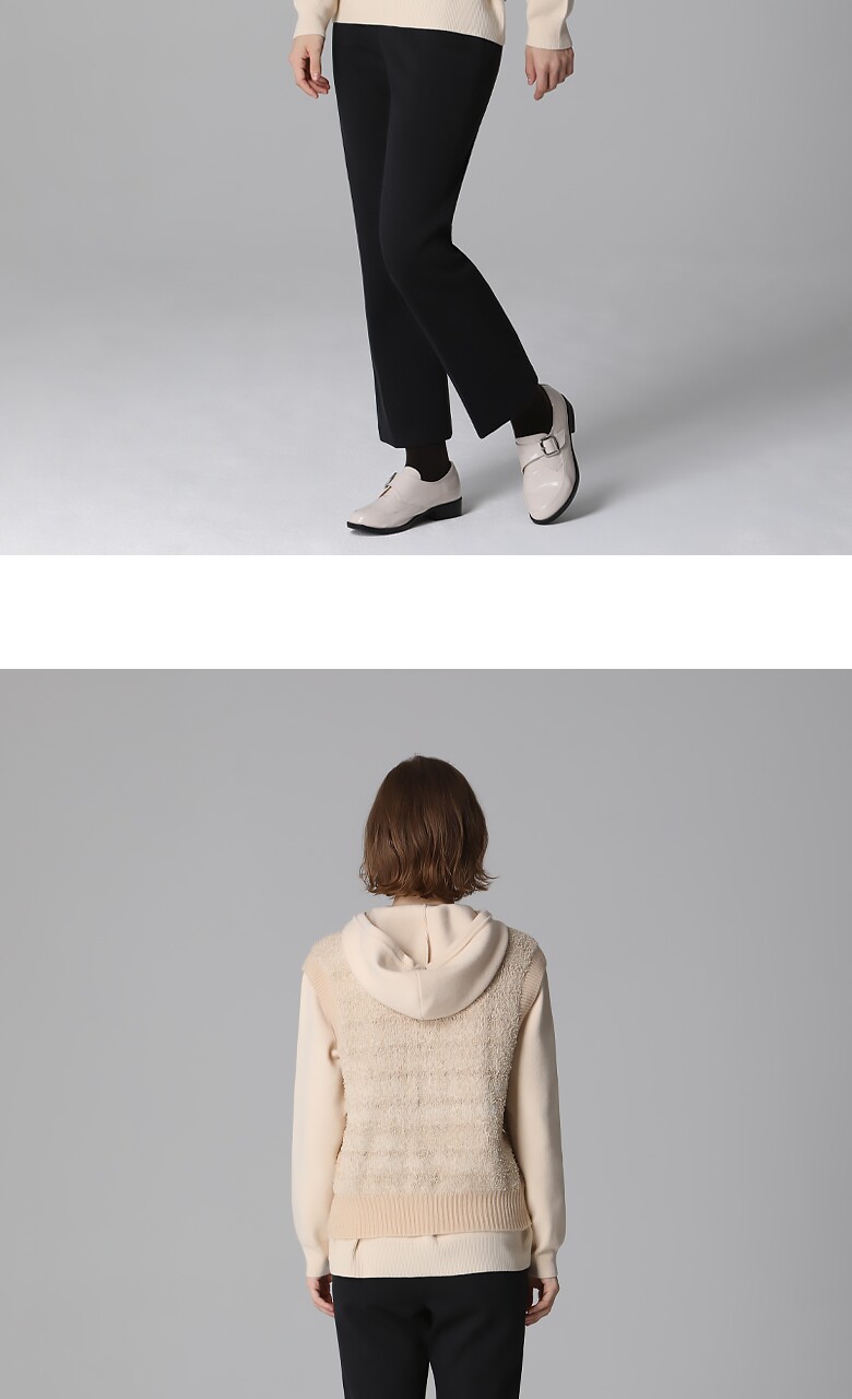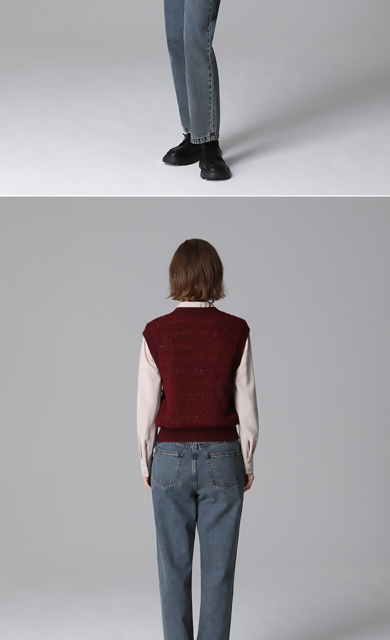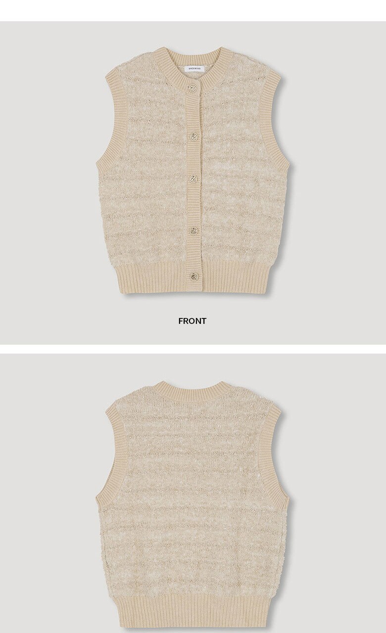 다양한 룩에 레이어드하기 좋은 베스트로 트위드 텍스쳐가 어우러져 고급스러운 무드를 연출할 수 있는 아이템입니다. 브랜드만의 고급원단으로 우수한 착용감을 선사합니다. 볼륨감 있는 조직감이 매력적이며 클래식한 무드가 느껴지는 디자인의 니트 베스트 입니다.
