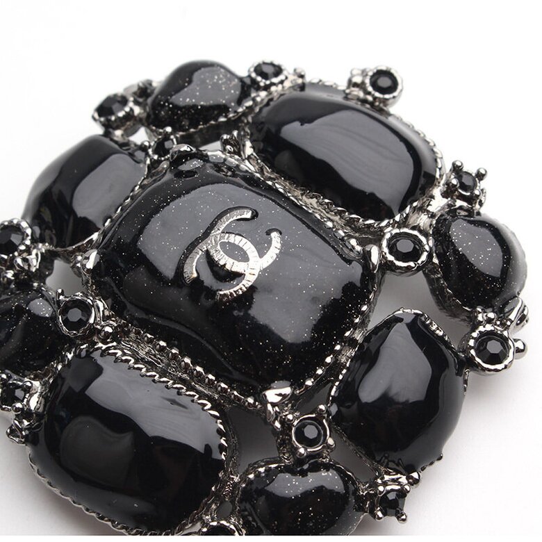 샤넬 블랙 에나멜 브로치를 선보입니다.