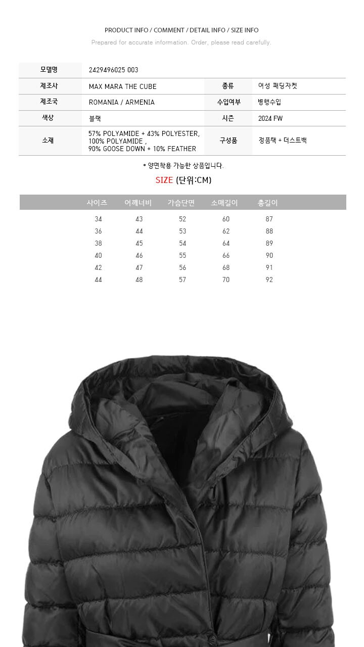 막스마라 24FW NOVEF 리버시블 후드 패딩 자켓 블랙 2429496025 003