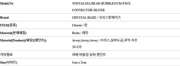 크리스탈헤이즈 NOSTALGIA BEAR-BUBBLEGUM-PAVE CONNECTOR SILVER 노스텔지아 베어 파베 버블검 실버 펜던