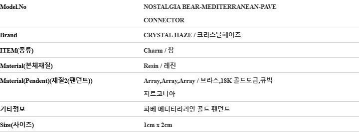 크리스탈헤이즈 NOSTALGIA BEAR-MEDITERRANEAN-PAVE CONNECTOR 노스텔지아 베어 파베 메디터라리안 골드 펜