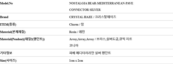 크리스탈헤이즈 NOSTALGIA BEAR-MEDITERRANEAN-PAVE CONNECTOR SILVER 노스텔지아 베어 파베 메디터라리안