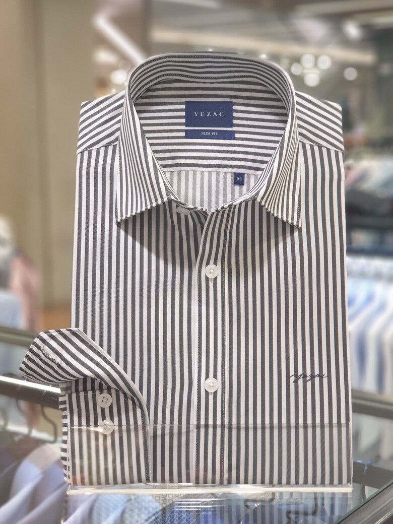 [예작셔츠] 블랙 스트라이프 슬림핏 스판 셔츠 YJ4 FBS 163 BK