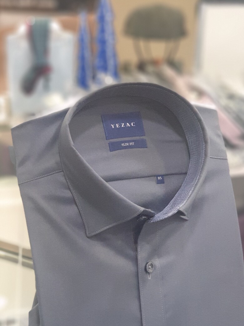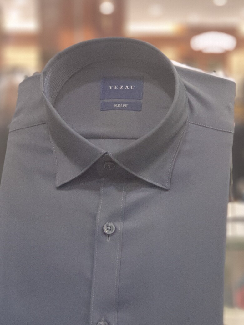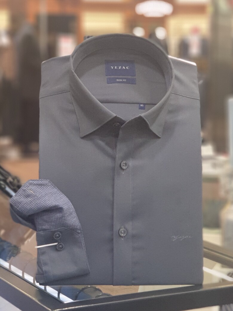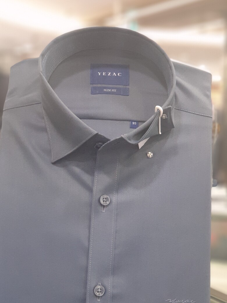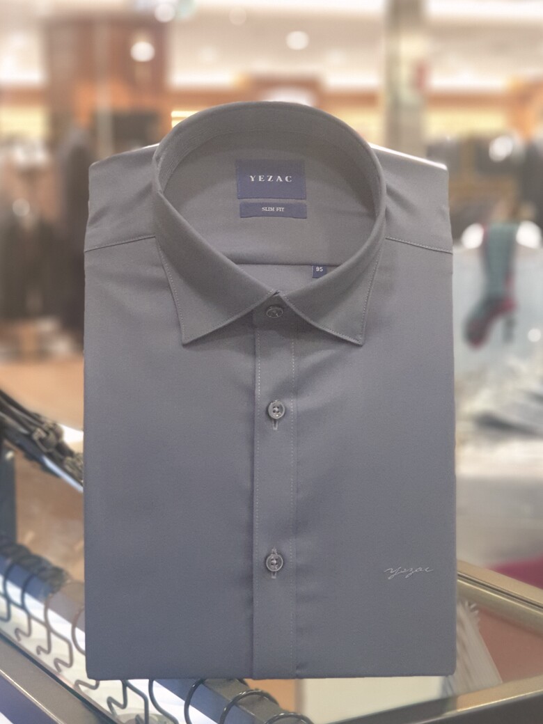 [예작셔츠] 폴리 스판 카라스냅버튼 슬림핏셔츠 YJESBS153GY