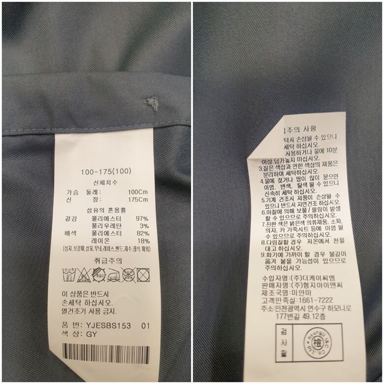 | 6. 세탁방법 및 취급시 주의사항 | 상품상세참조 |